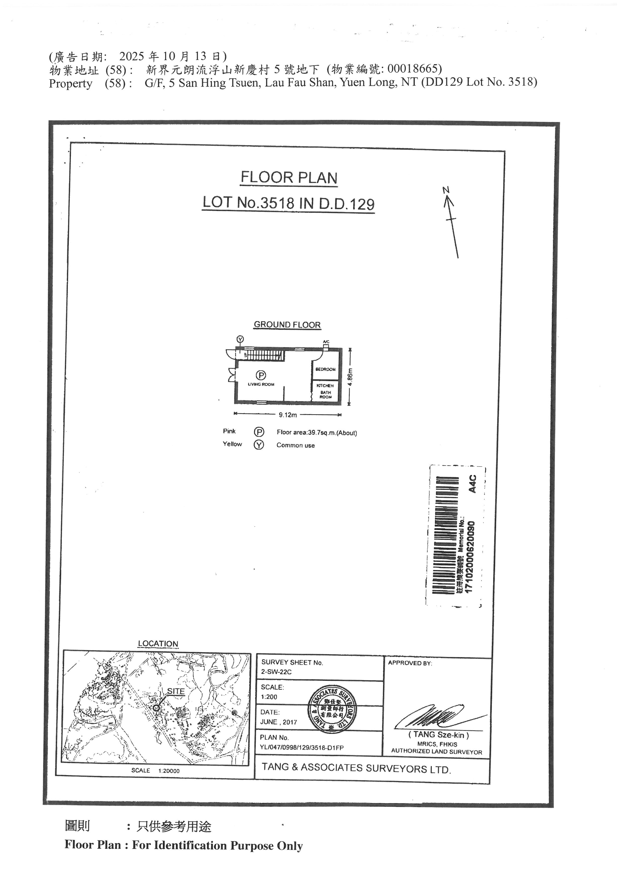 新界元朗流浮山新慶村5號地下 (DD129 Lot No. 3518) (物業編號: 00018665)