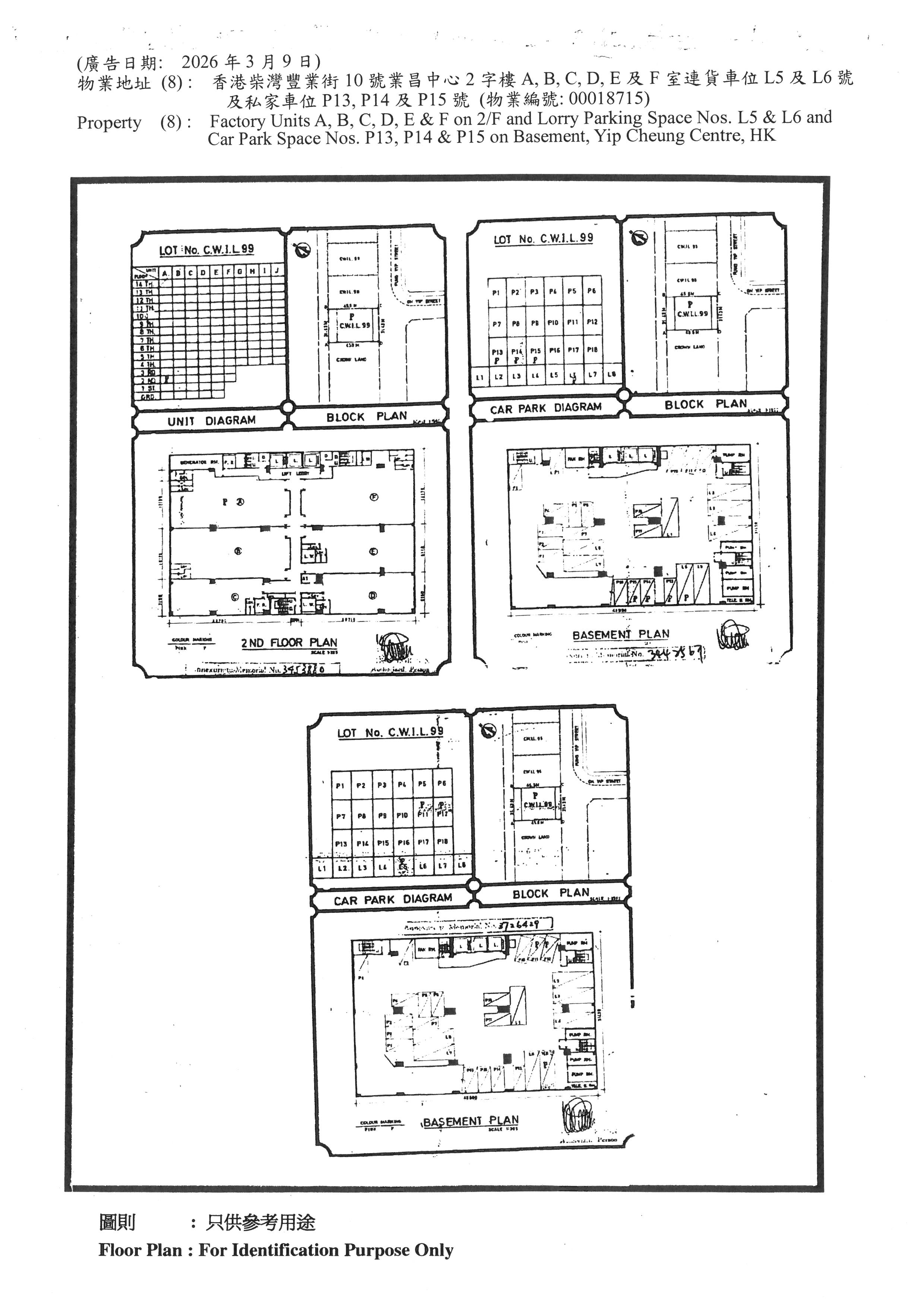 香港柴灣豐業街10號業昌中心2字樓A, B, C, D, E及F室連貨車位L5及L6號及私家車位P13, P14及P15號 (物業編號: 00018715)