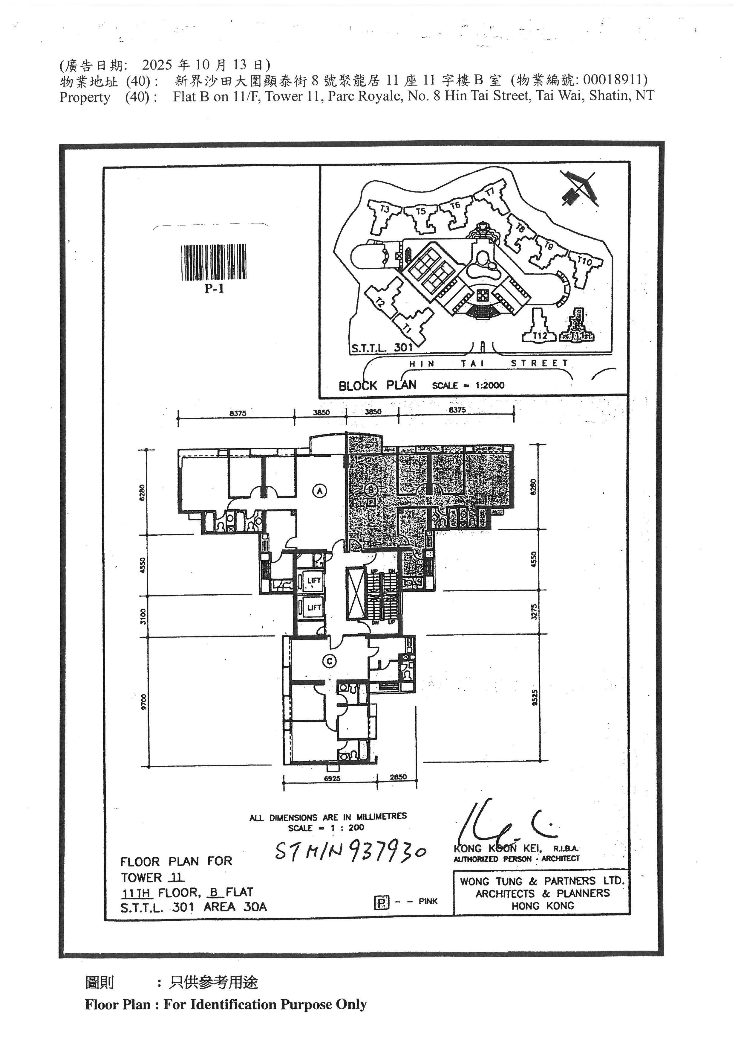 Flat B on 11/F, Tower 11, Parc Royale, No. 8 Hin Tai Street, Tai Wai, Shatin, NT