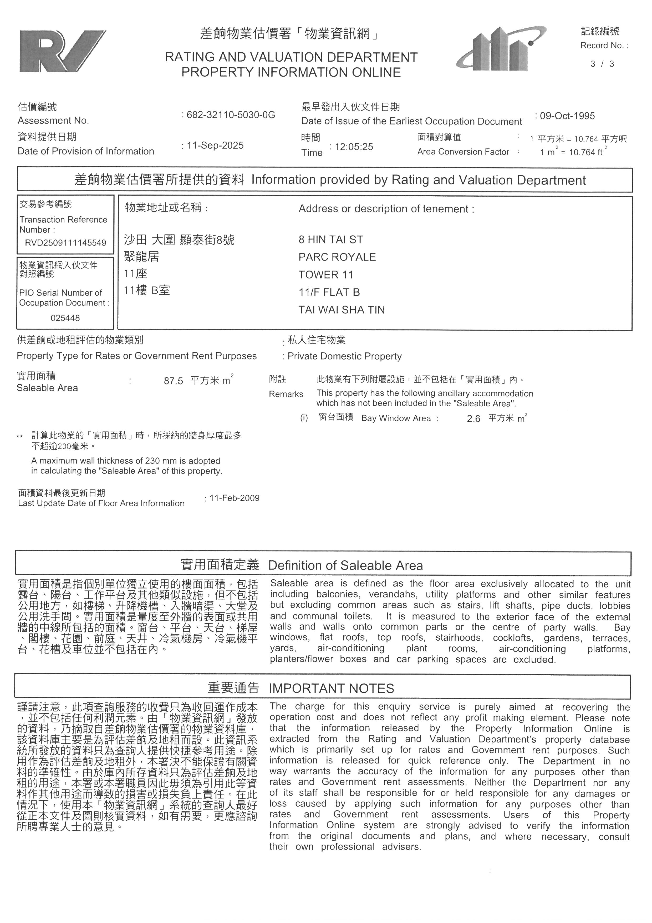 大圍 聚龍居 11座 11樓 B室 更新日期 : 2025-10-15