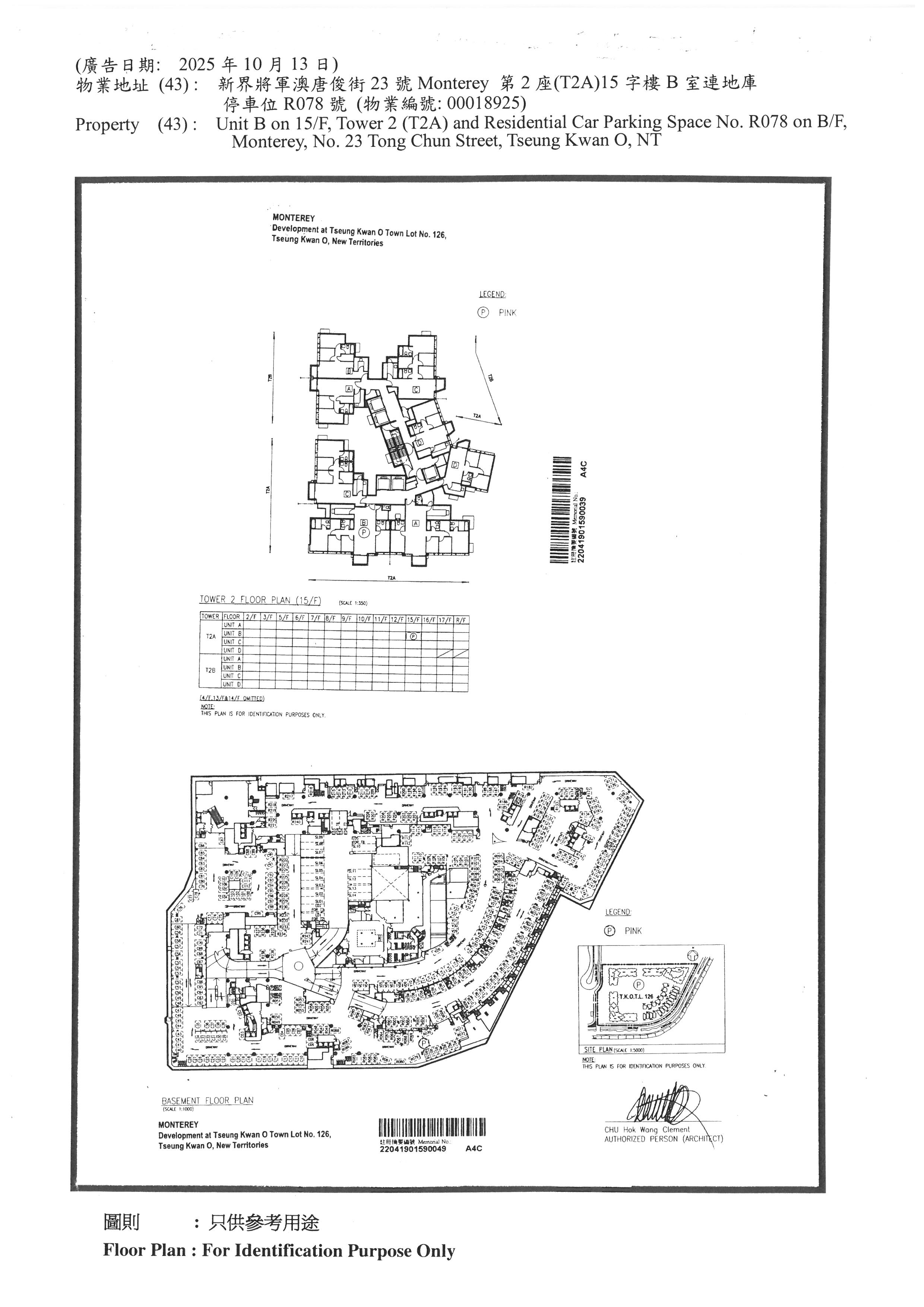 Unit B on 15/F, Tower 2 (T2A) and Residential Car Parking Space No. R078 on B/F, Monterey, No. 23 Tong Chun Street, Tseung Kwan O, NT