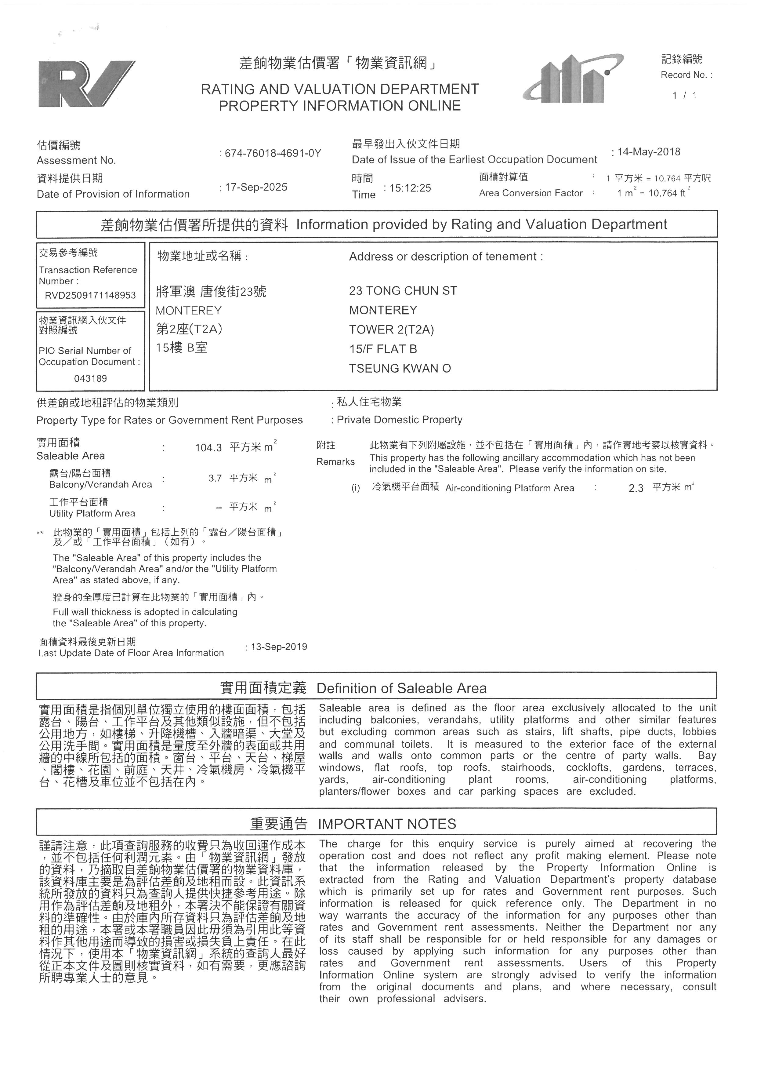 將軍澳 Monterey 更新日期 : 2025-10-15