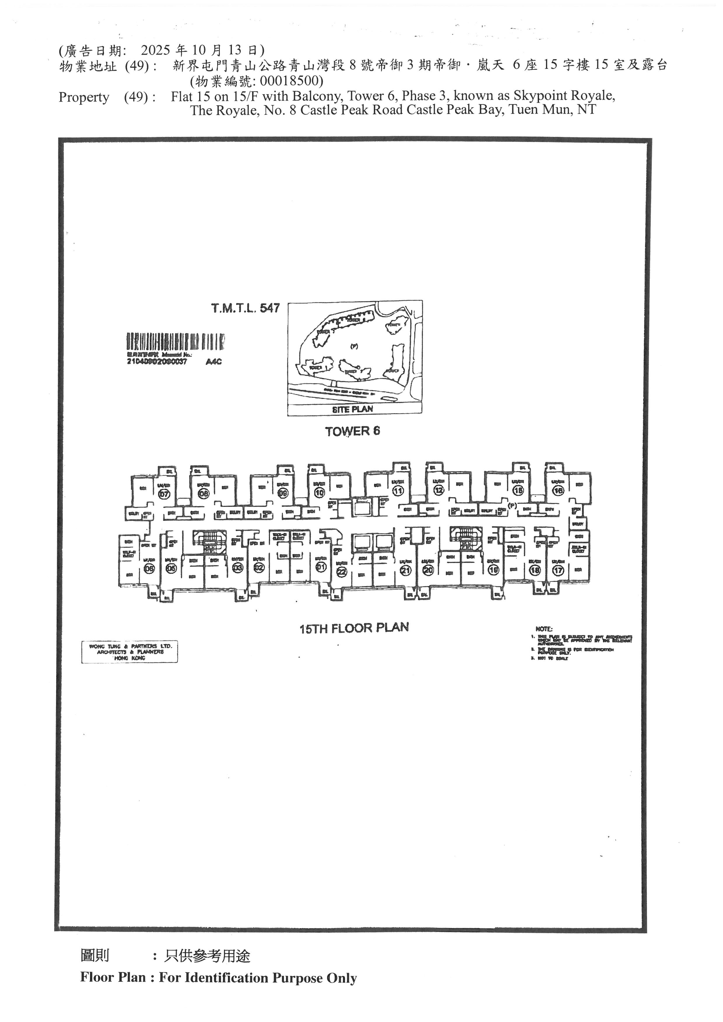 新界屯門青山公路青山灣段8號帝御3期帝御.嵐天 6座15字樓15室及露台  (物業編號: 00018500)