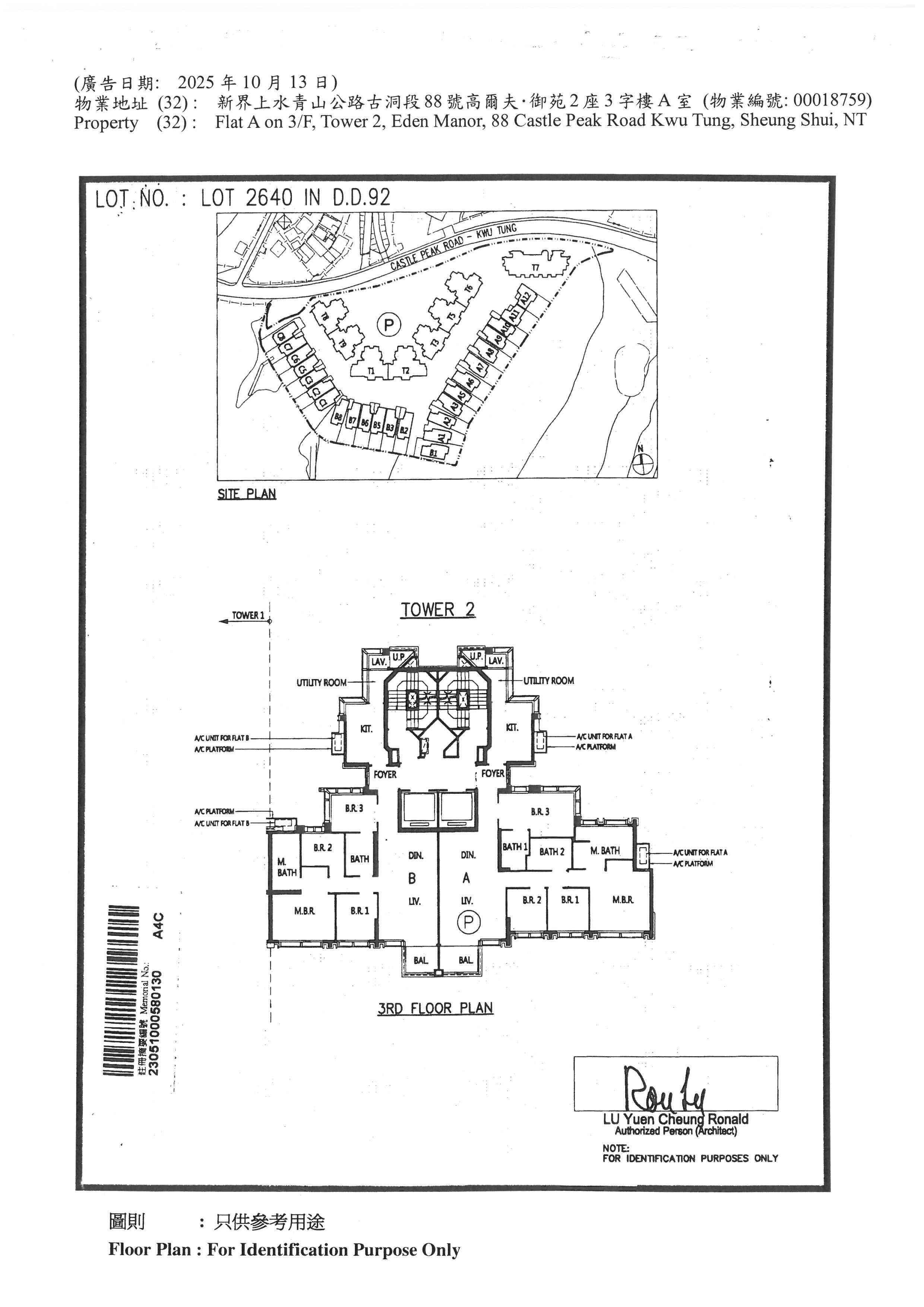 新界上水青山公路古洞段88號高爾夫.御苑2座3字樓A室連露台及工作平台 (物業編號: 00018759)