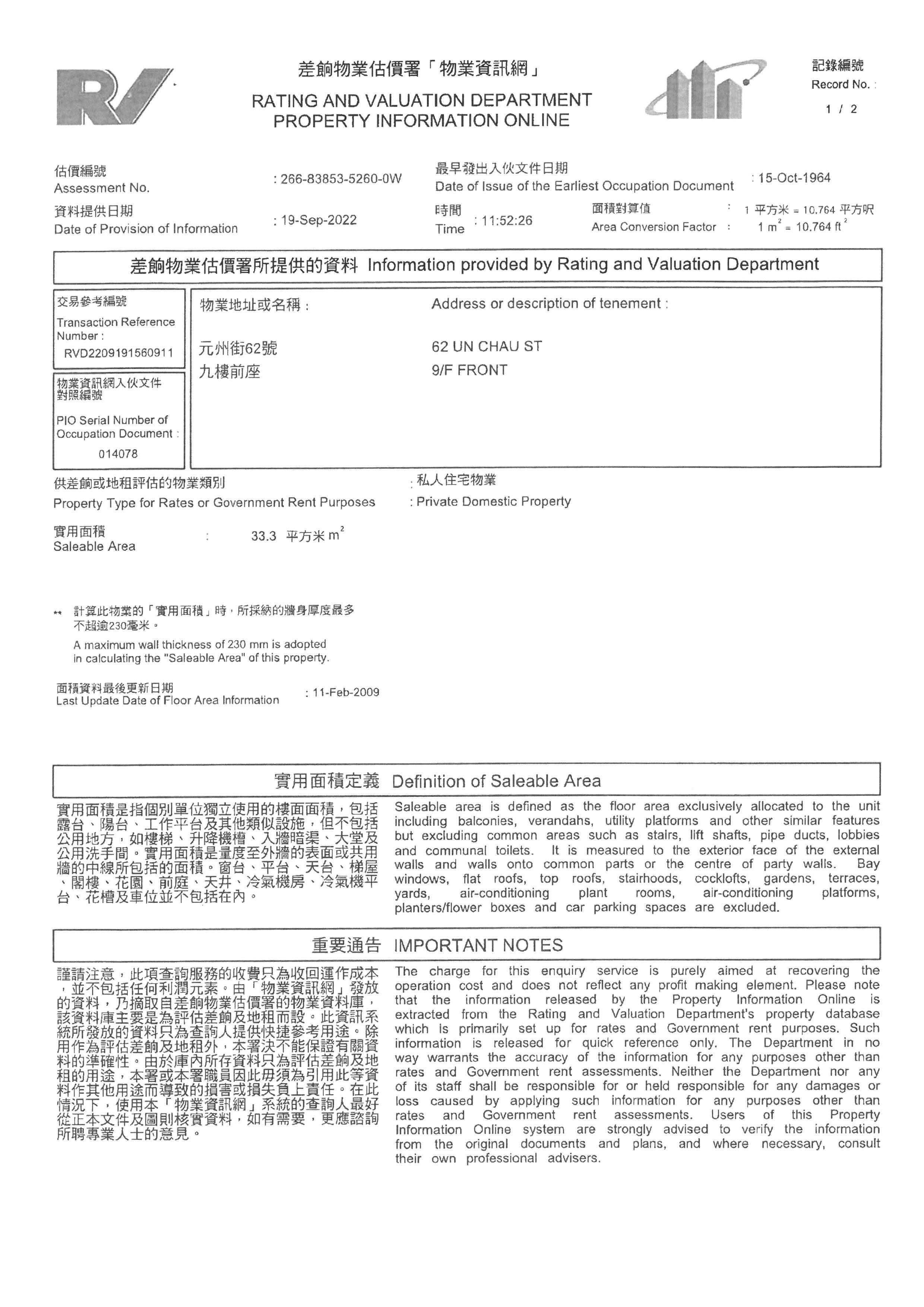 本網頁提供的物業資料只供參考之用,雖然本公司已盡力小心提供上述資料準確無誤,但本公司不會就本網頁所提供物業資料的任何錯誤、遺漏、失實陳述承擔任何保證及責任,本公司在任何情況下,都不須對因直接或間接使用或不能使用本網站提供的物業資料而引致任何損失或損毀負上法律責任或任何賠償。任何人仕必須明白及自行查證方作出競投、投買或購買,並於競投、投買或購買前由專業人仕(包括但並不謹限於律師、測量師及建築師等)獲取專業意見。