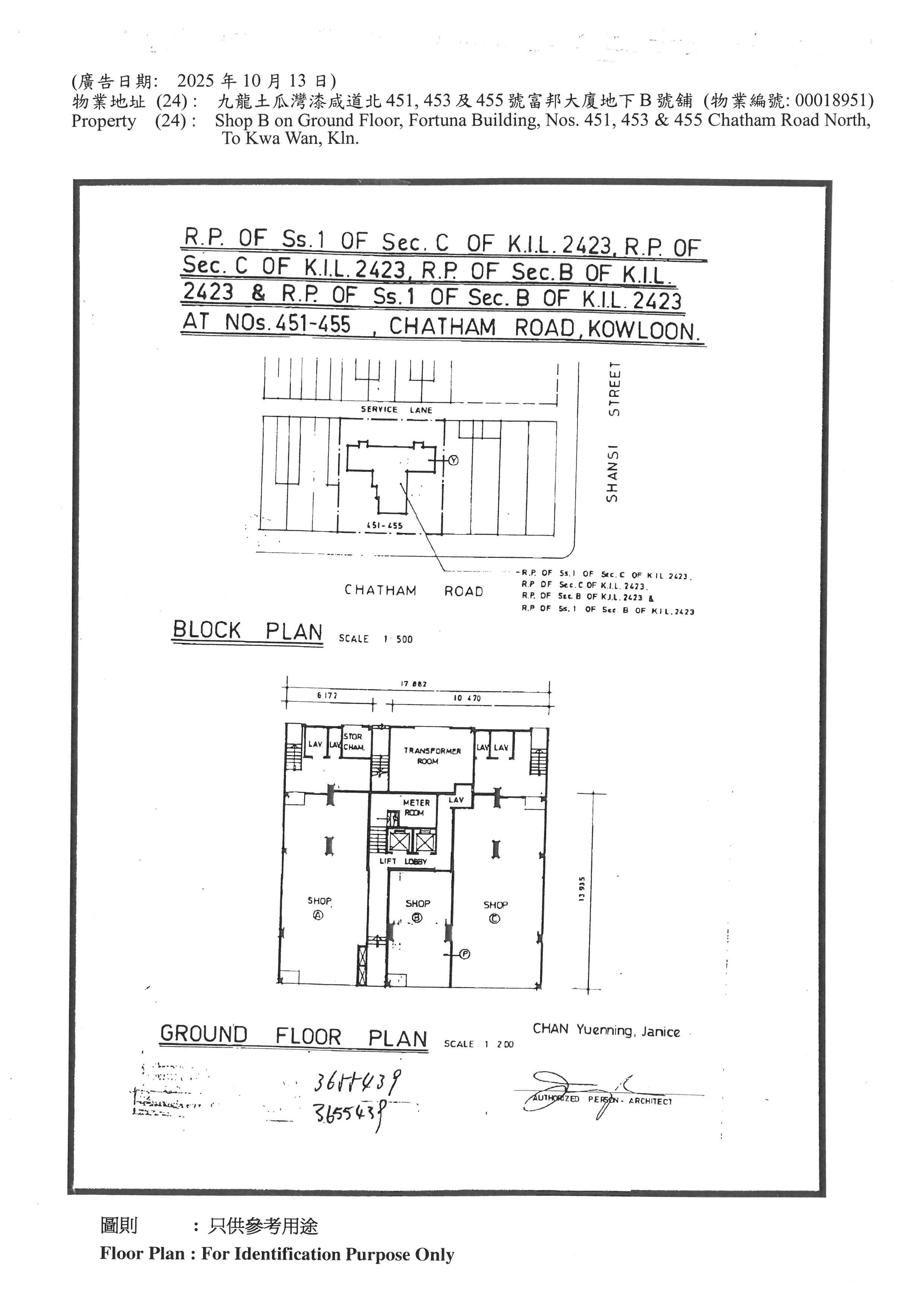 九龍土瓜灣漆咸道北451, 453及455號富邦大廈地下B號舖 (物業編號: 00018951)