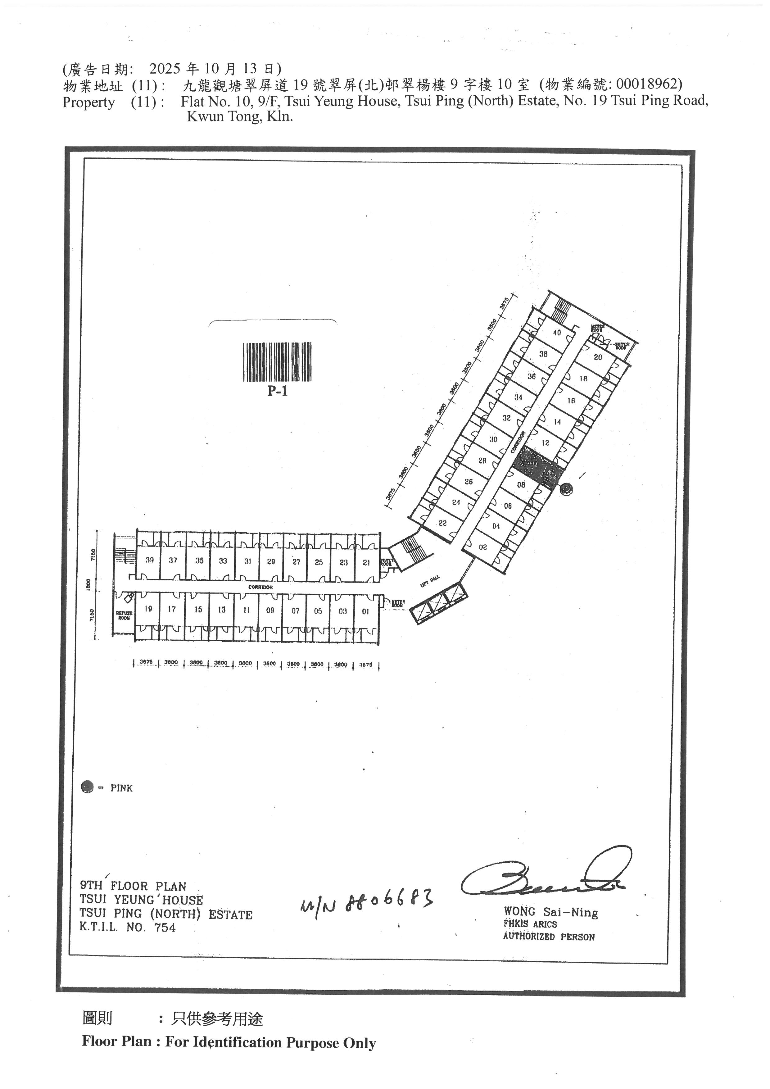 九龍觀塘翠屏道19號翠屏(北)邨翠楊樓9字樓10室 (自由及第二市場) (物業編號: 00018962)
