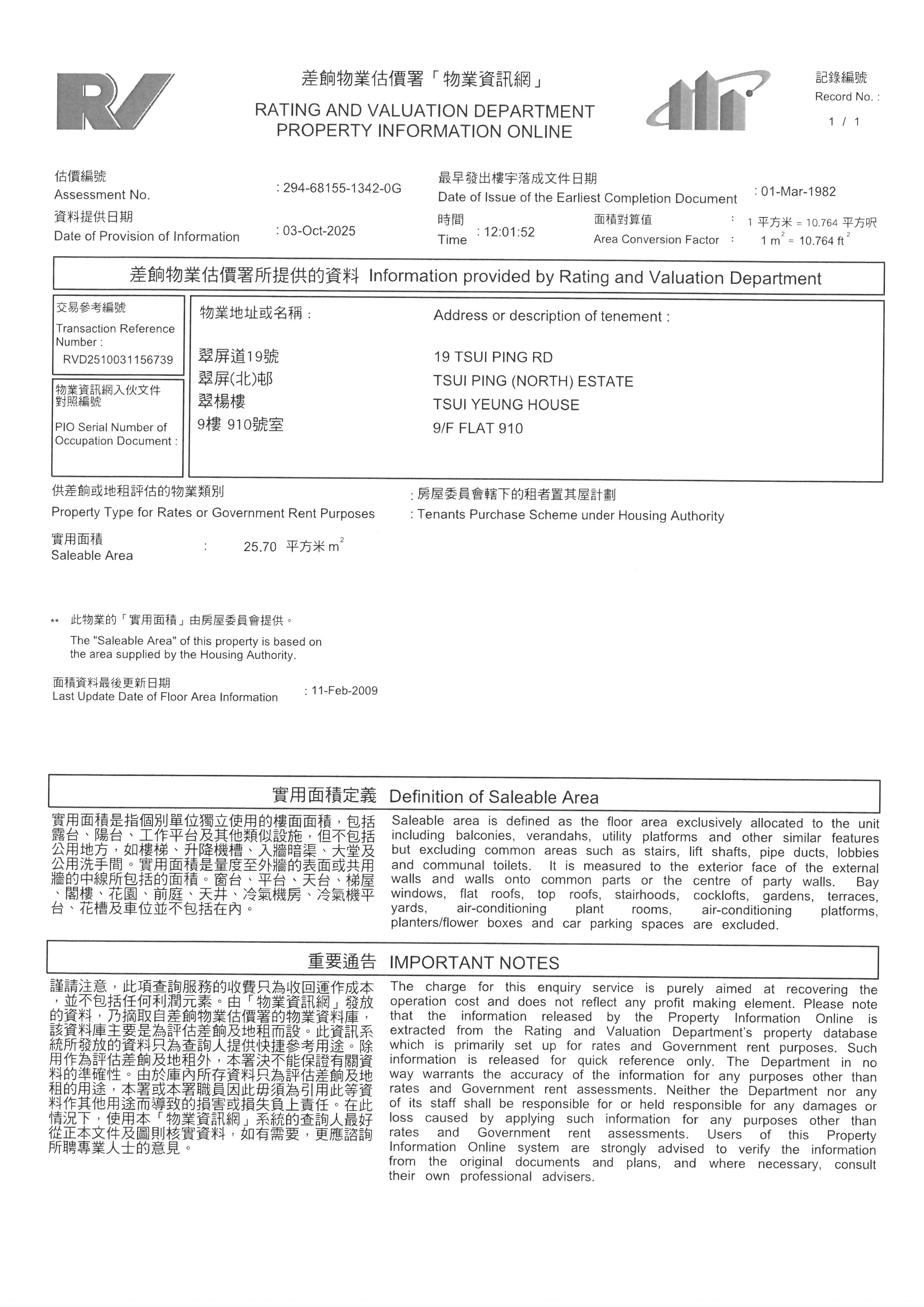 觀塘 翠屏(北)邨 9樓 10室 更新日期 : 2025-10-10