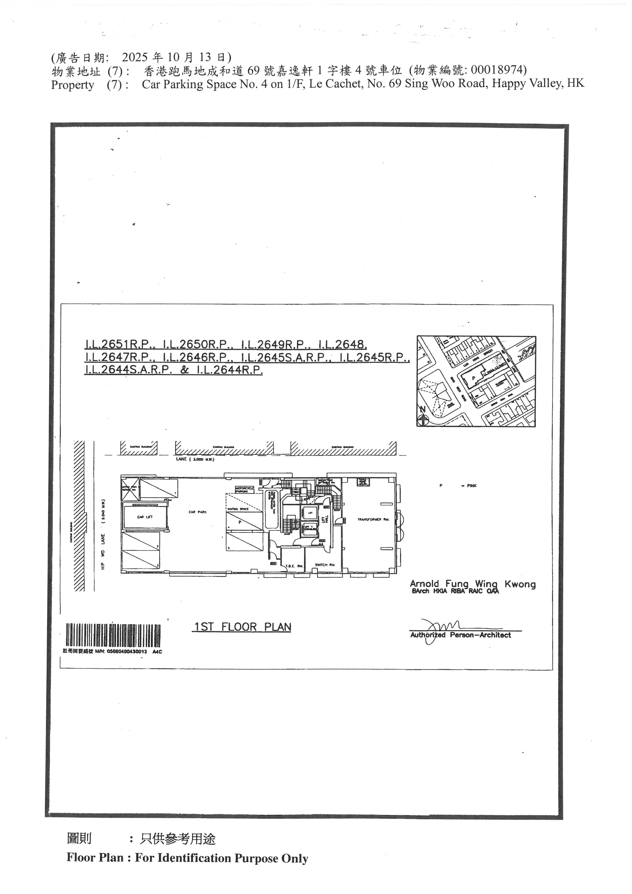 Car Parking Space No. 4 on 1/F, Le Cachet, No. 69 Sing Woo Road, Happy Valley, HK