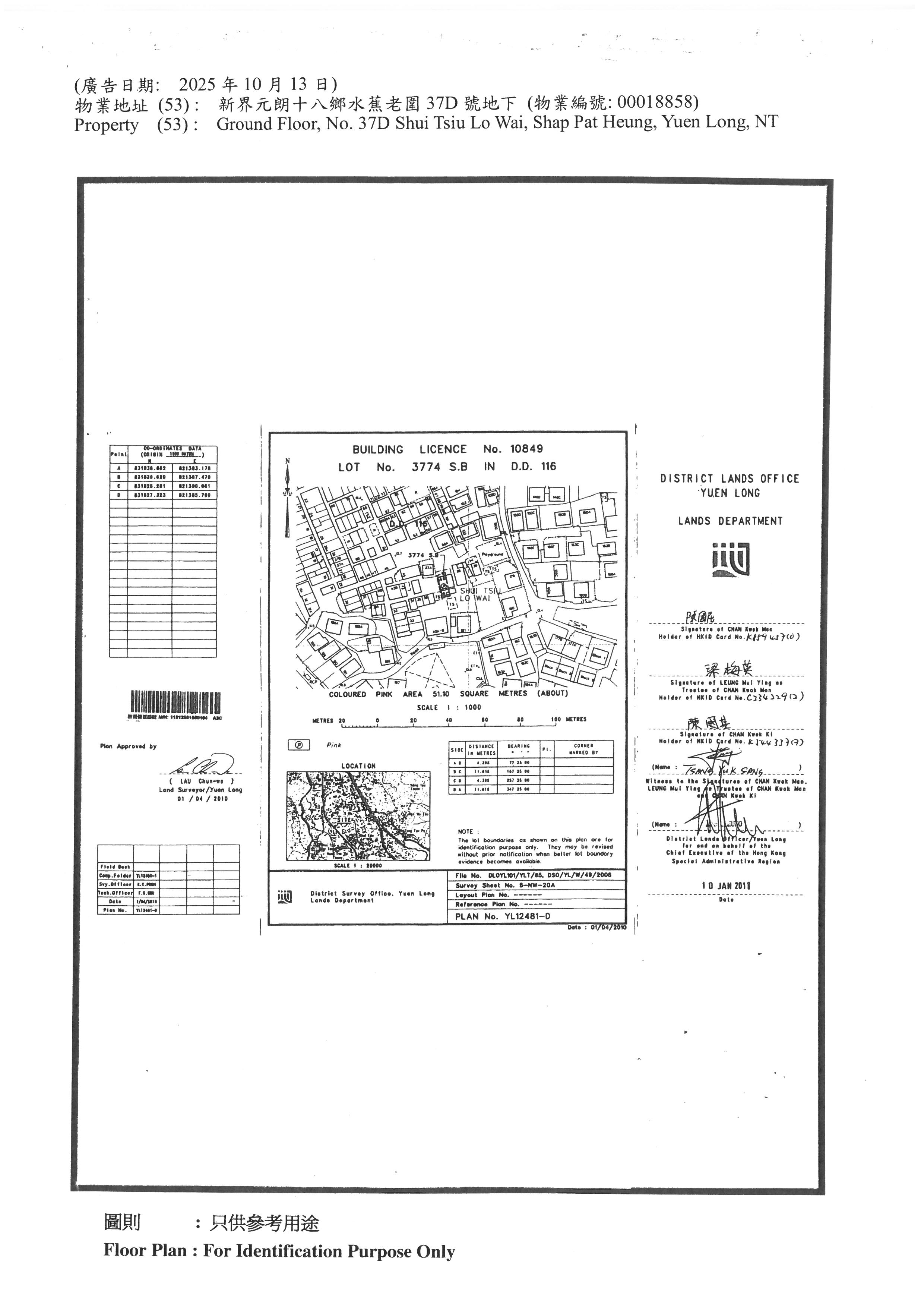 新界元朗十八鄉水蕉老圍37D號地下 (物業編號: 00018858)