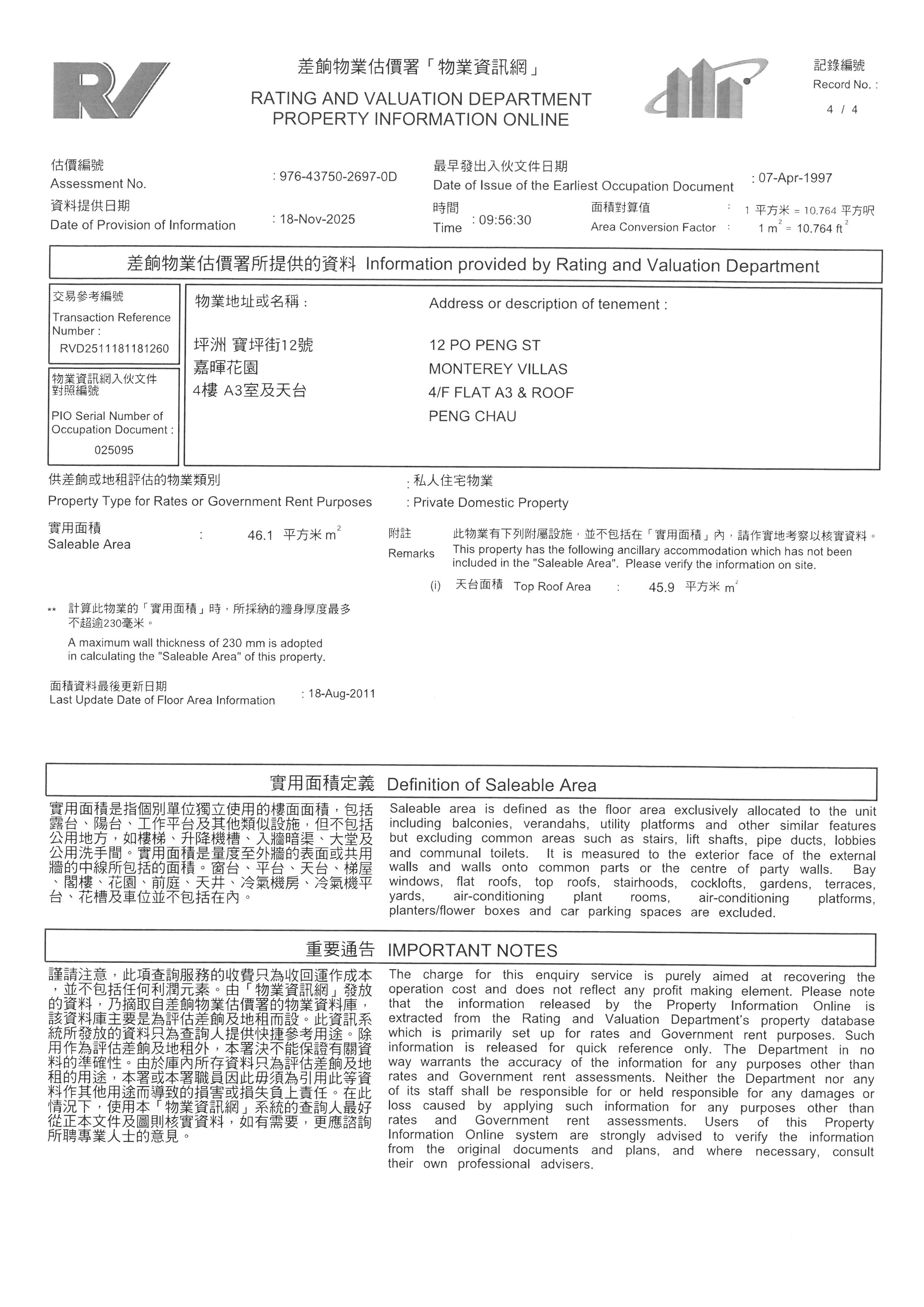 本網頁提供的物業資料只供參考之用,雖然本公司已盡力小心提供上述資料準確無誤,但本公司不會就本網頁所提供物業資料的任何錯誤、遺漏、失實陳述承擔任何保證及責任,本公司在任何情況下,都不須對因直接或間接使用或不能使用本網站提供的物業資料而引致任何損失或損毀負上法律責任或任何賠償。任何人仕必須明白及自行查證方作出競投、投買或購買,並於競投、投買或購買前由專業人仕(包括但並不謹限於律師、測量師及建築師等)獲取專業意見。