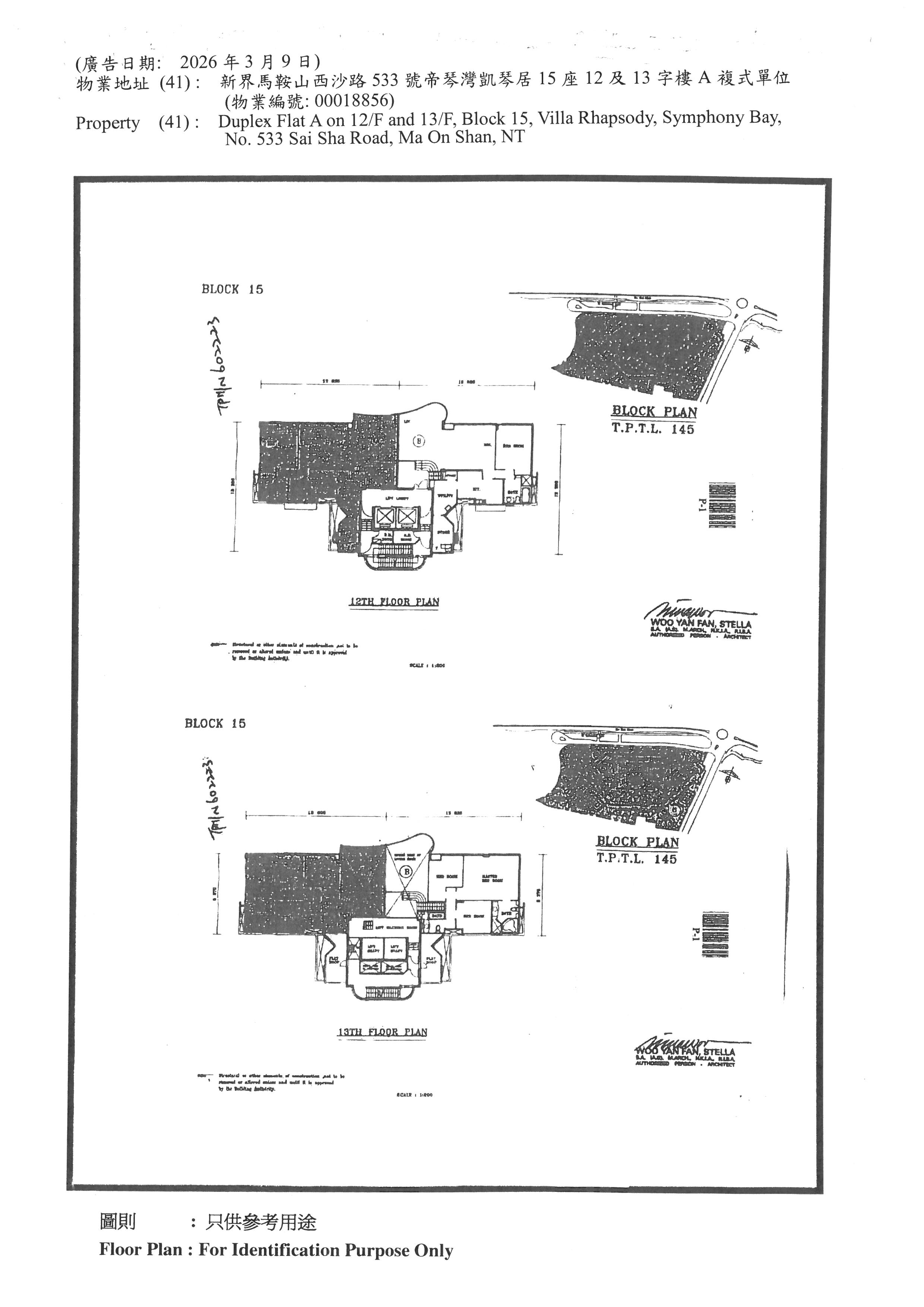 新界馬鞍山西沙路533號帝琴灣凱琴居15座12及13字樓A複式單位 (物業編號: 00018856)