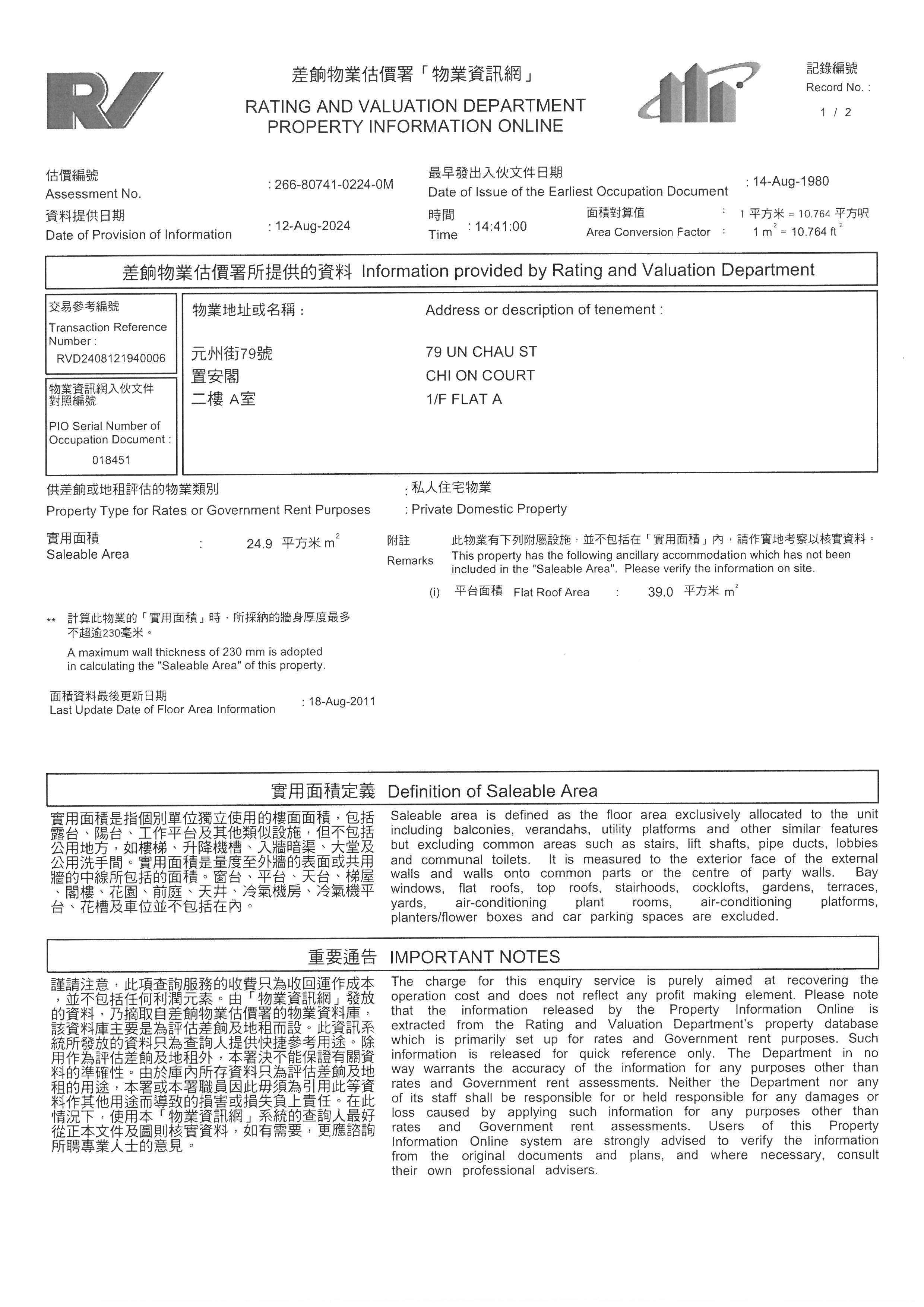 Flat A including its Flat Roof on 1/F, Chi On Court, Nos. 77-81 Un Chau Street, Cheung Sha Wan, Kln.