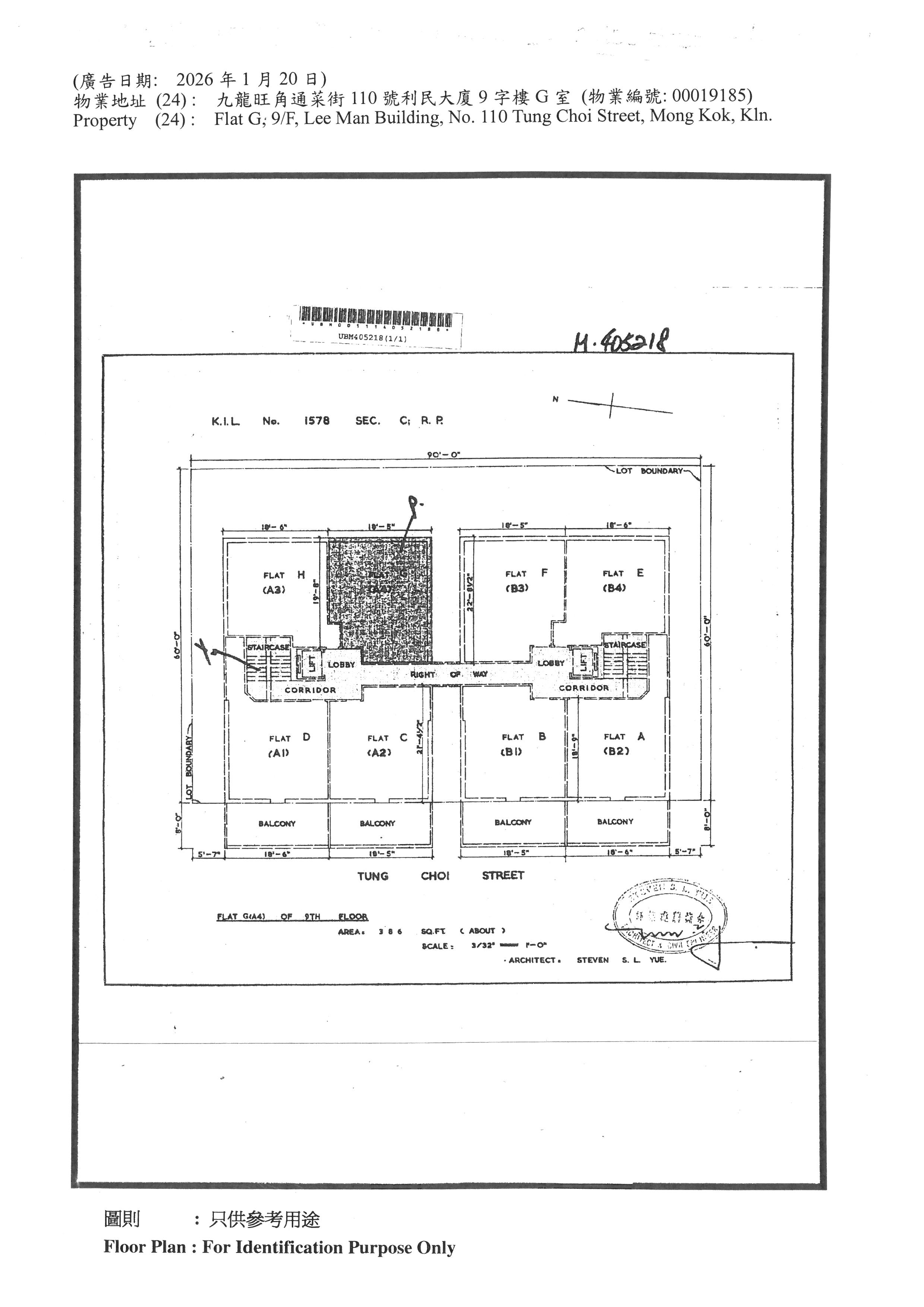 Flat G, 9/F, Lee Man Building, No. 110 Tung Choi Street, Mong Kok, Kln.