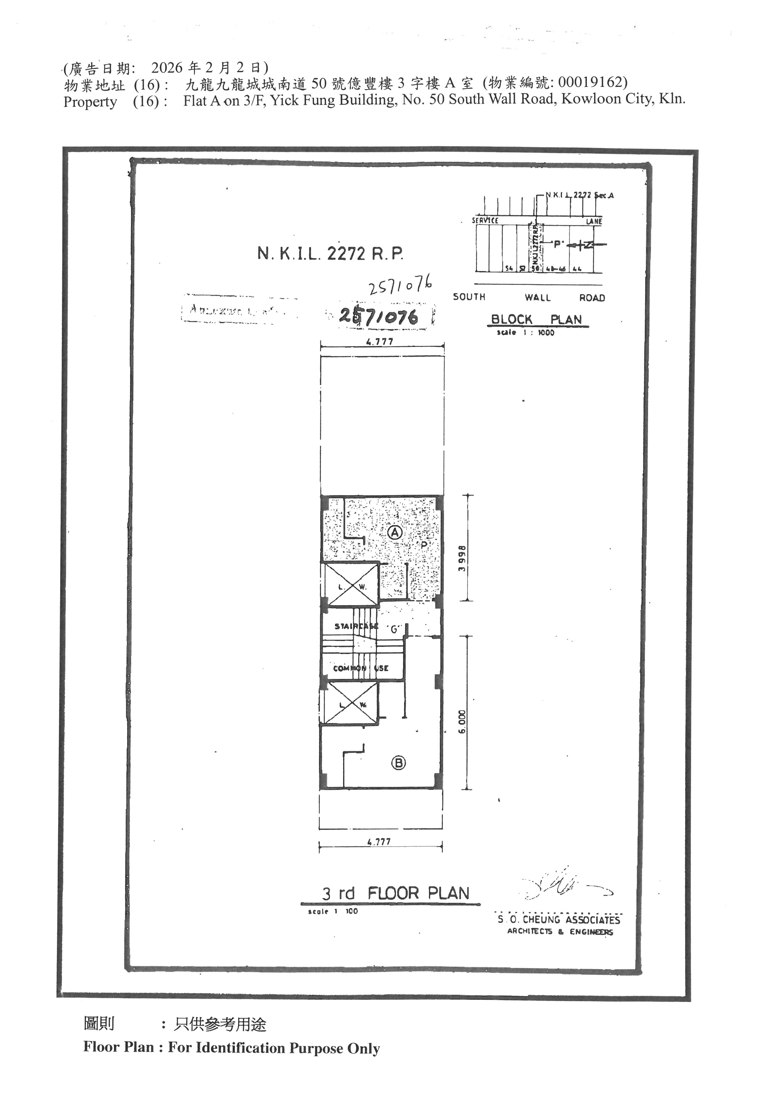 九龍九龍城城南道50號億豐樓3字樓A室 (物業編號: 00019162)