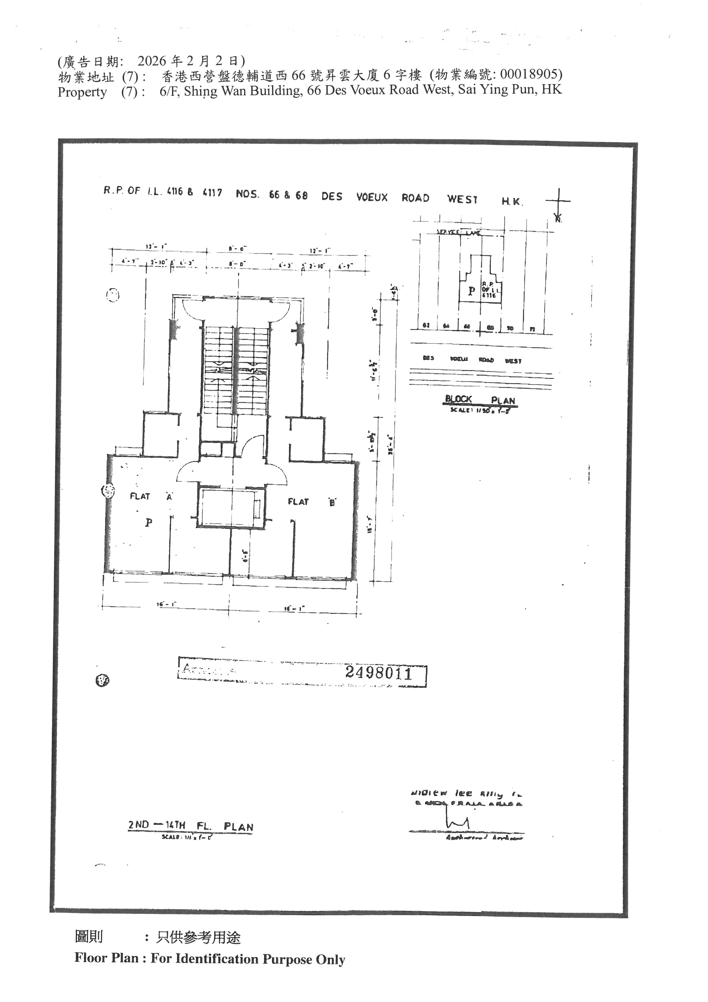 香港西營盤德輔道西66號昇雲大廈6字樓 (物業編號: 00018905)