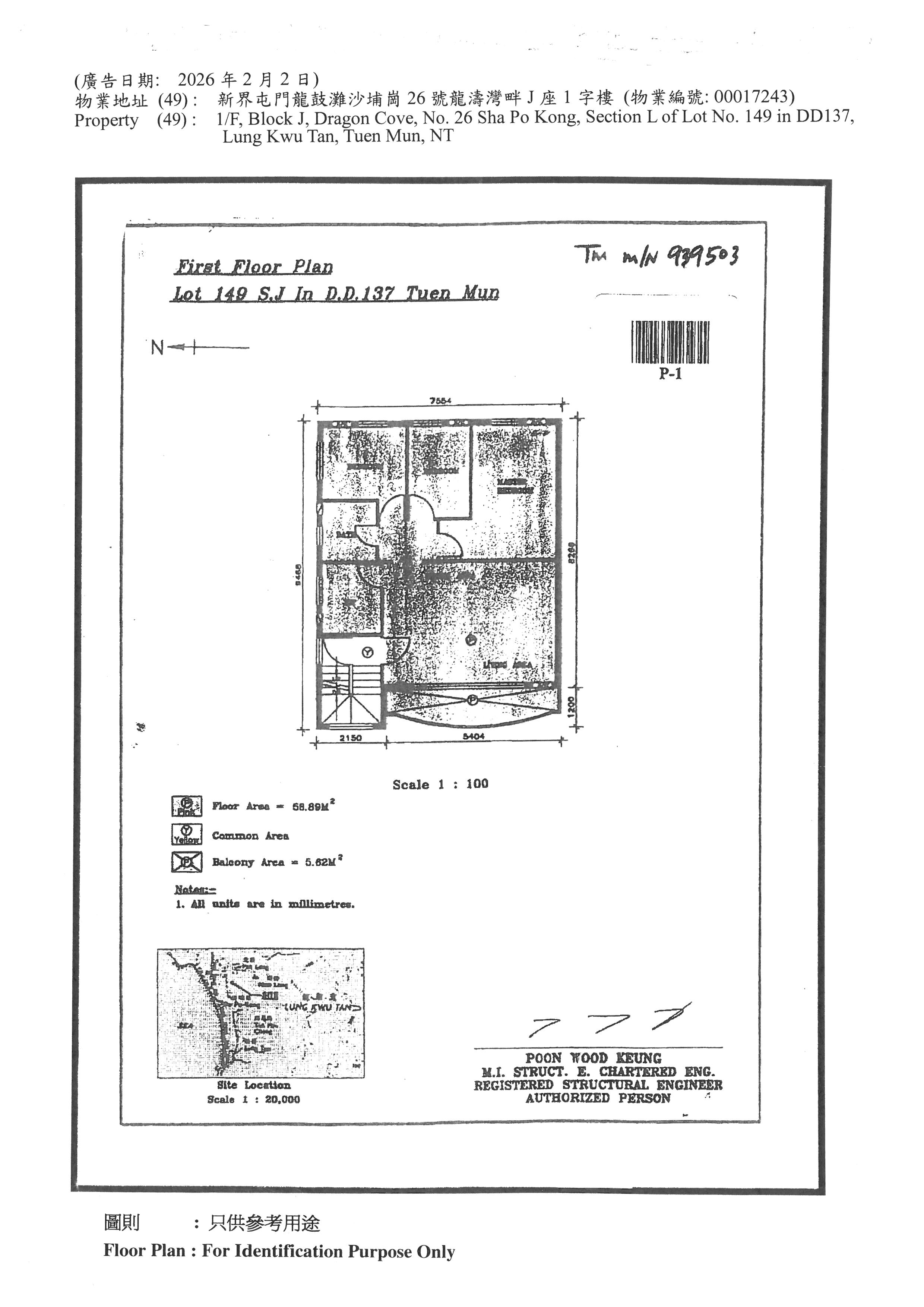 1/F, Block J, Dragon Cove, No. 26 Sha Po Kong, Section L of Lot No. 149 in DD137, Lung Kwu Tan, Tuen Mun, NT