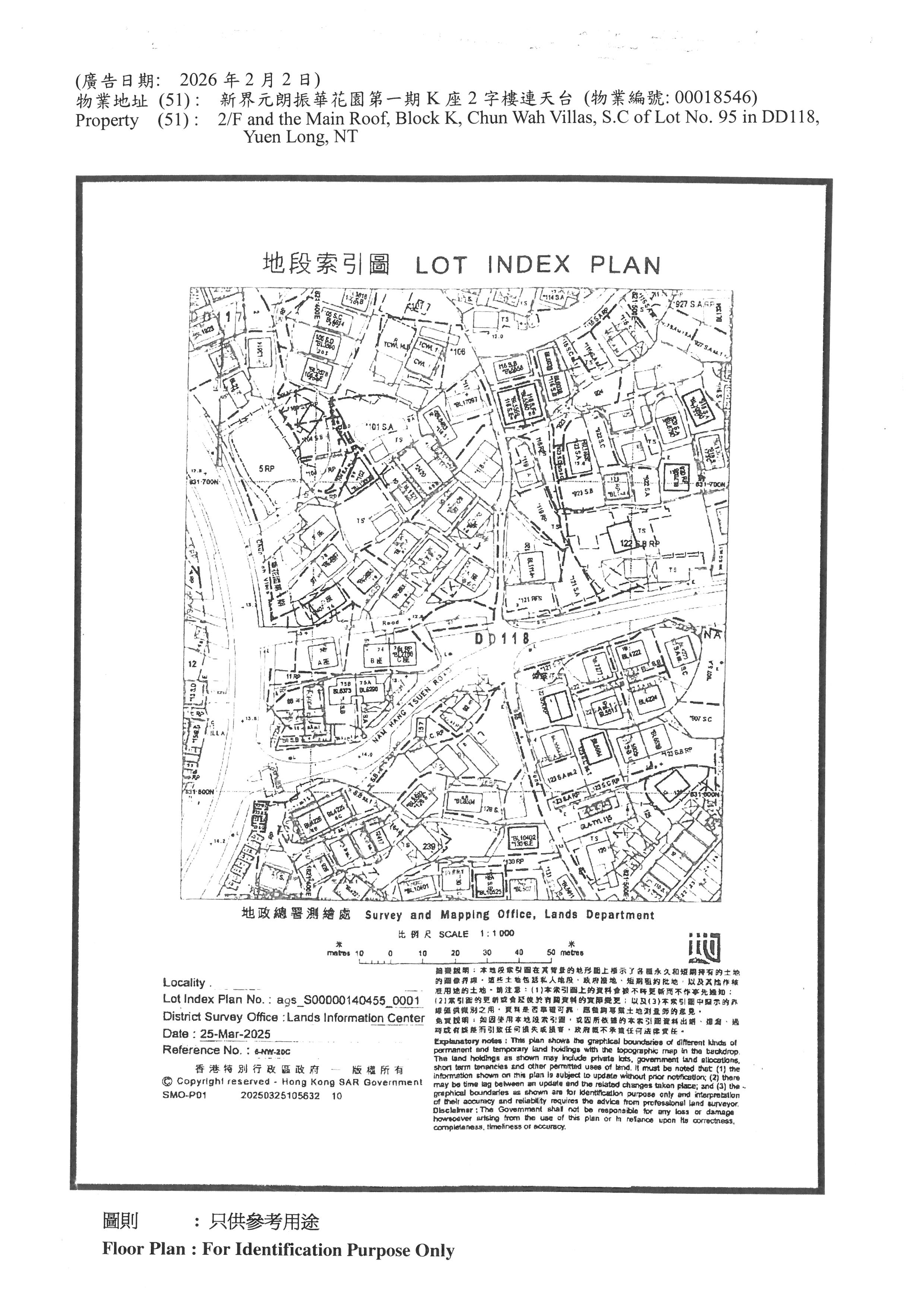 2/F and the Main Roof, Block K, Chun Wah Villas, S.C of Lot No. 95 in DD118, Yuen Long, NT