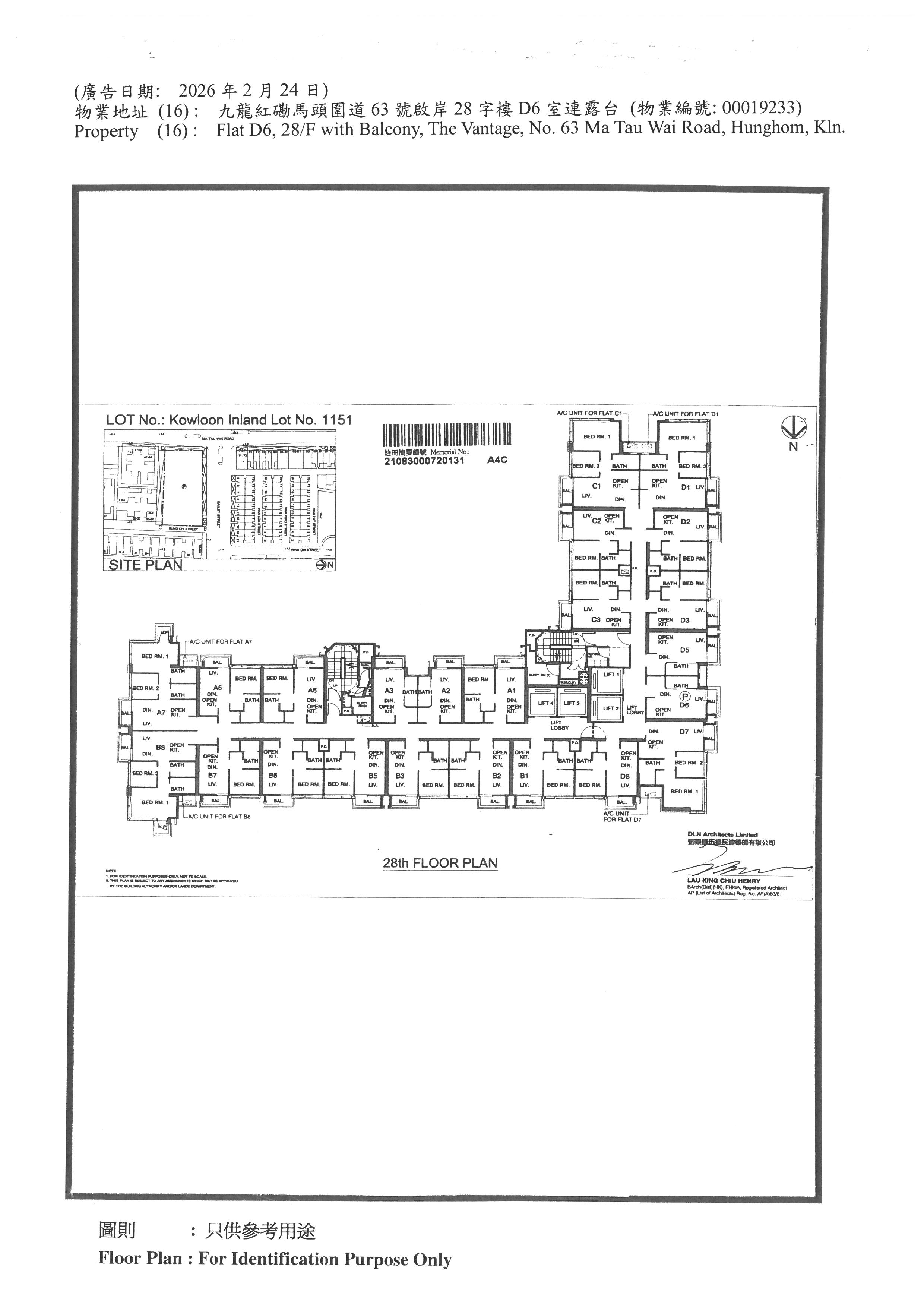 Flat D6, 28/F with Balcony, The Vantage, No. 63 Ma Tau Wai Road, Hunghom, Kln.