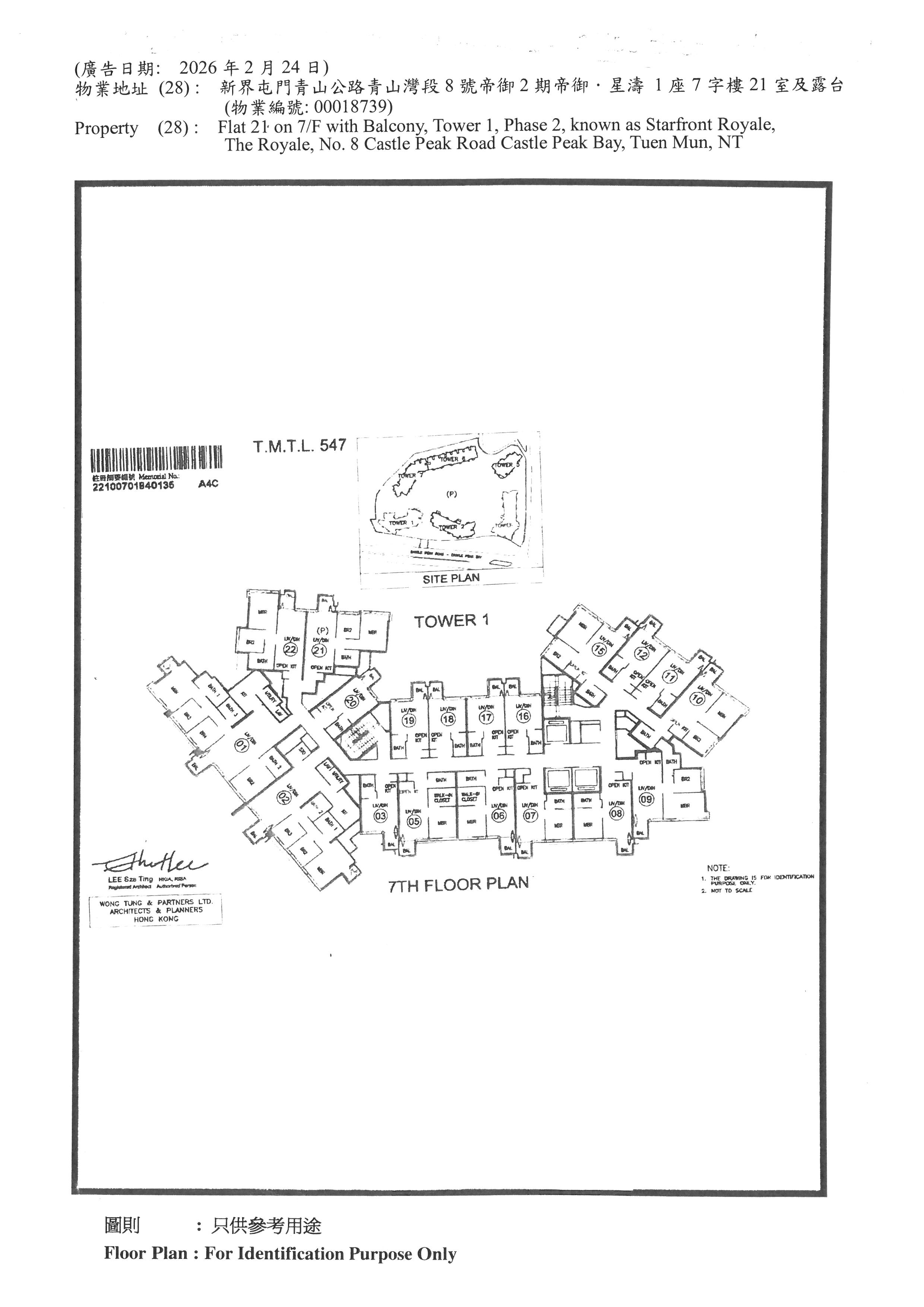 新界屯門青山公路青山灣段8號帝御2期帝御.星濤 1座7字樓21室及露台 (有價必售 不設收回) (物業編號: 00018739)