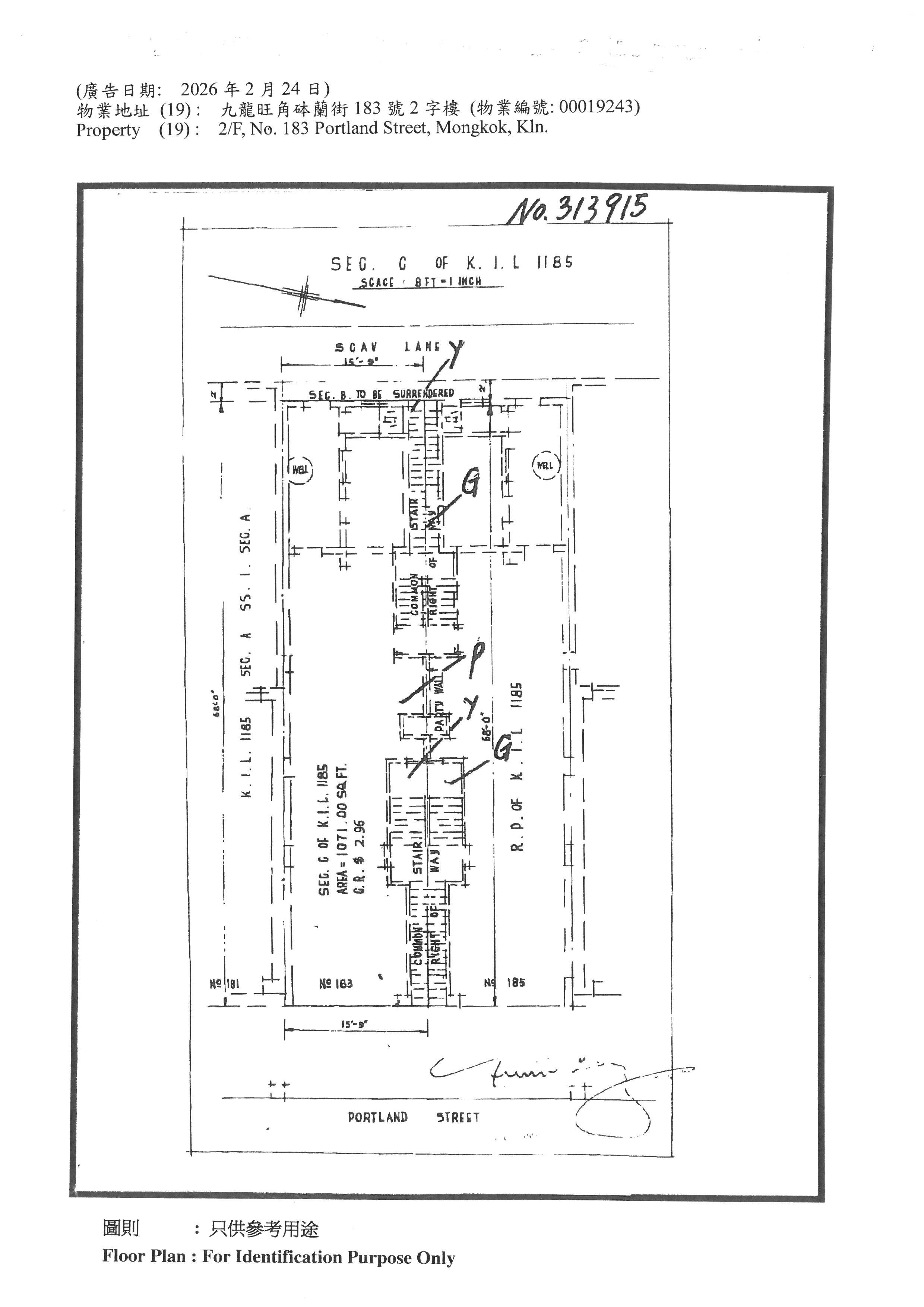 九龍旺角砵蘭街183號2字樓 (物業編號: 00019243)