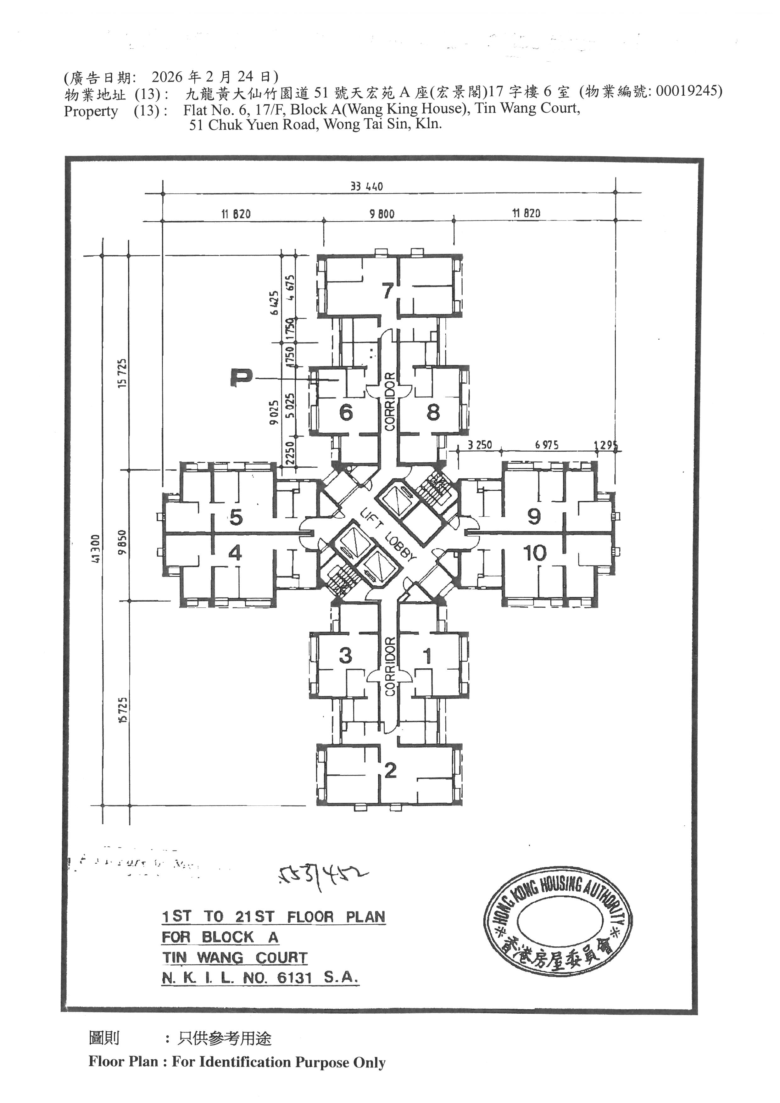 Flat No. 6, 17/F, Block A(Wang King House), Tin Wang Court, 51 Chuk Yuen Road, Wong Tai Sin, Kln.