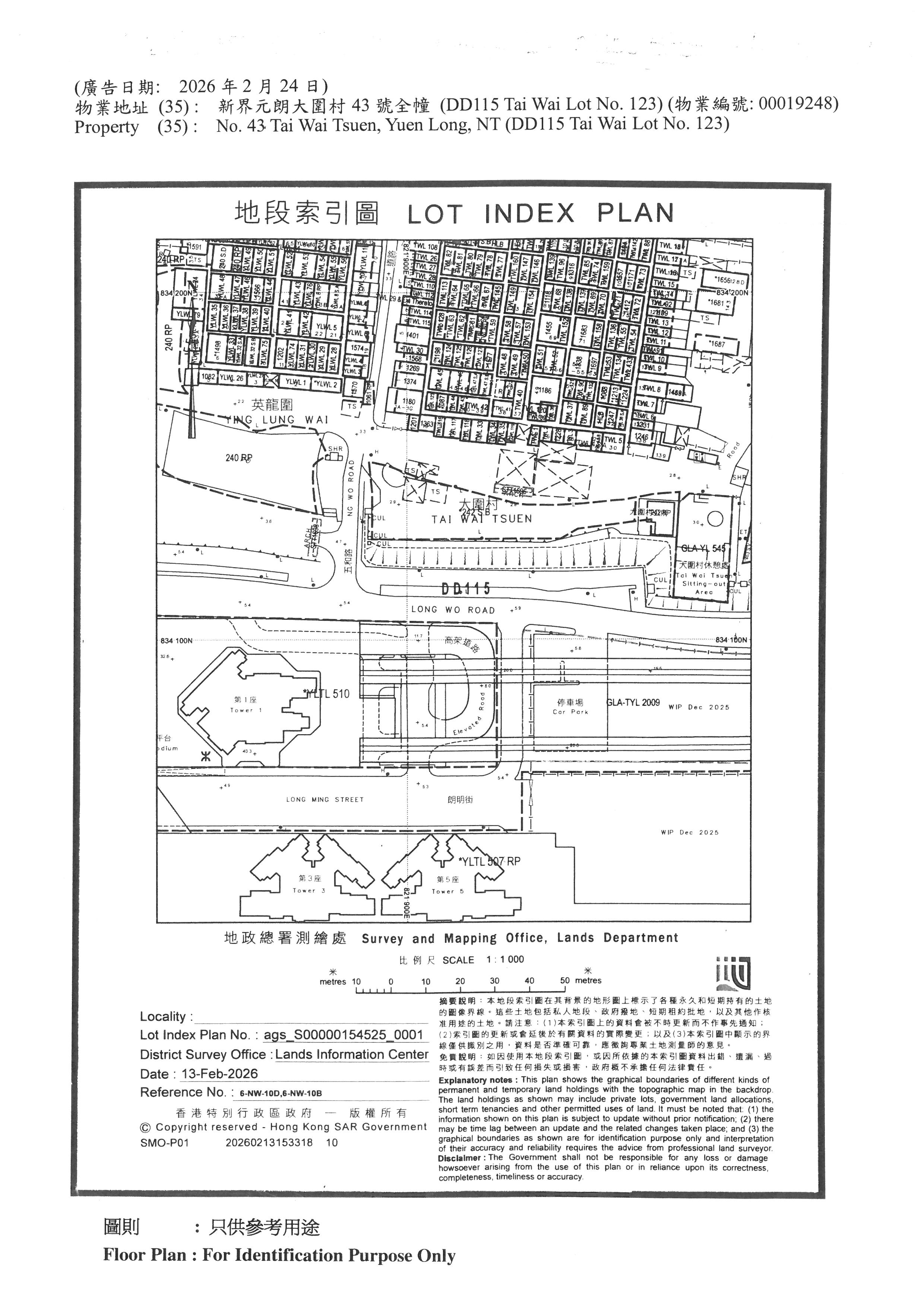 新界元朗大圍村43號全幢 (DD115 Tai Wai Lot No. 123) (物業編號: 00019248)