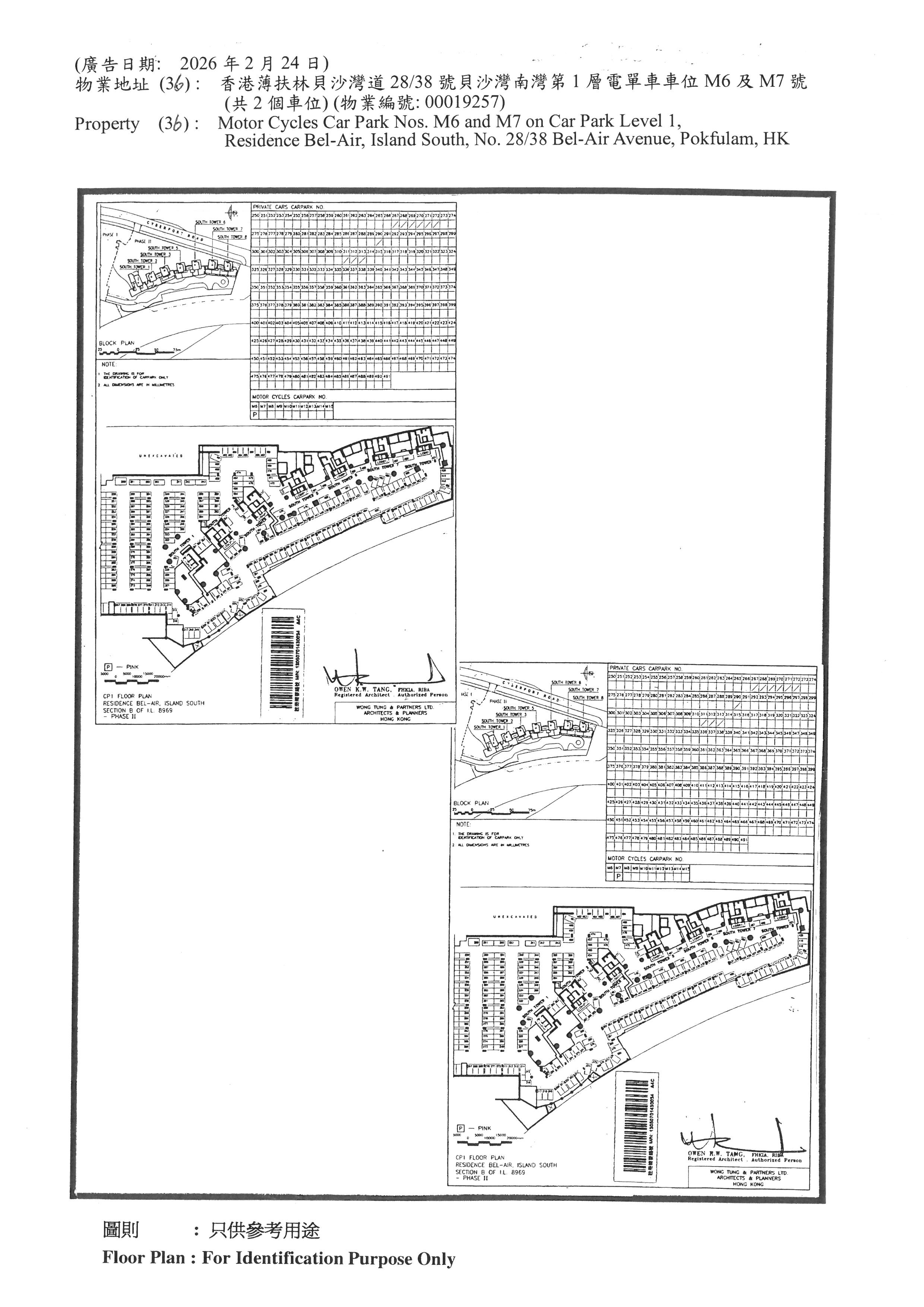 Motor Cycles Car Park Nos. M6 and M7 on Car Park Level 1, Residence Bel-Air, Island South, No. 28/38 Bel-Air Avenue, Pokfulam, HK