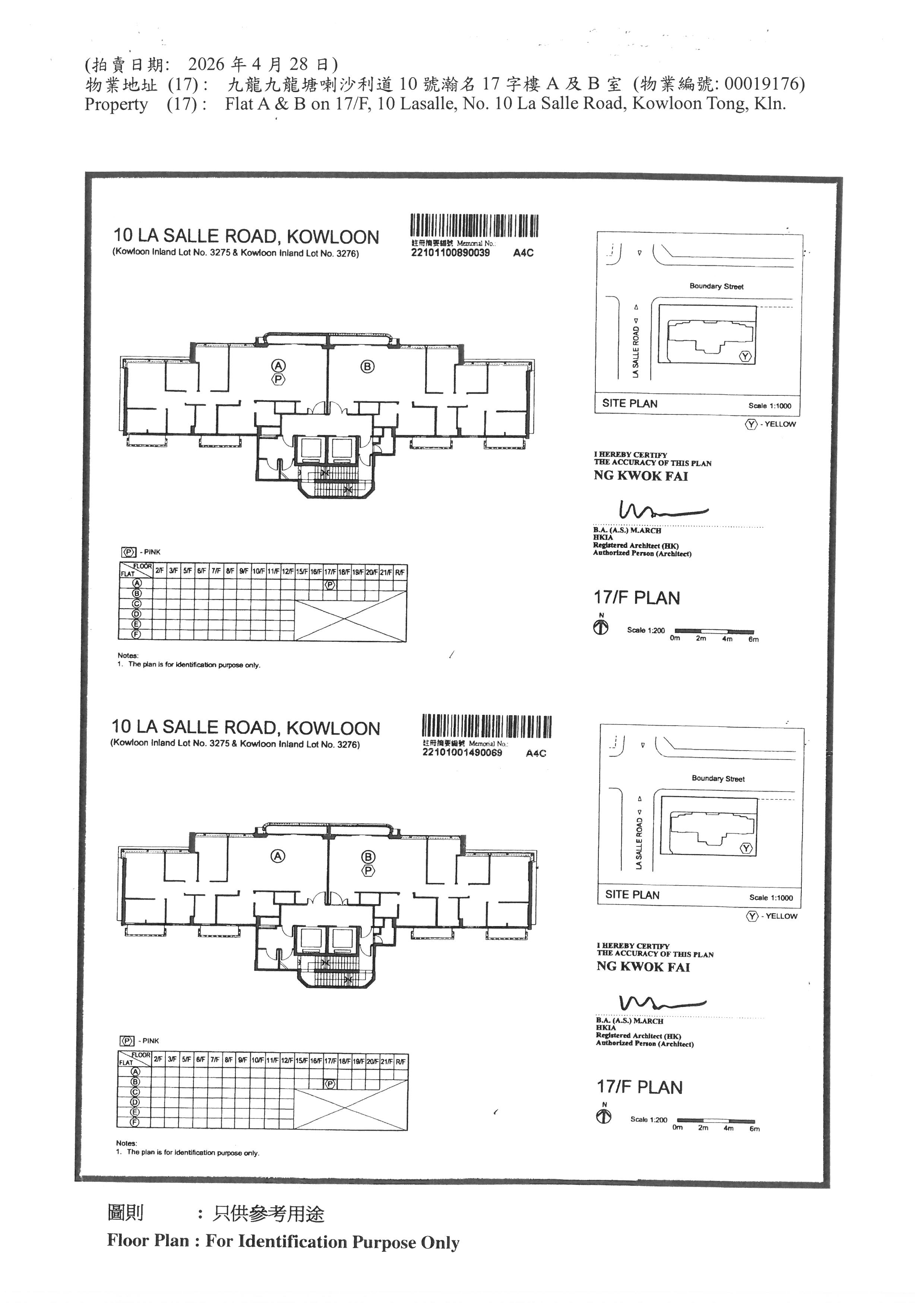 九龍九龍塘喇沙利道10號瀚名17字樓A及B室 (物業編號: 00019176)