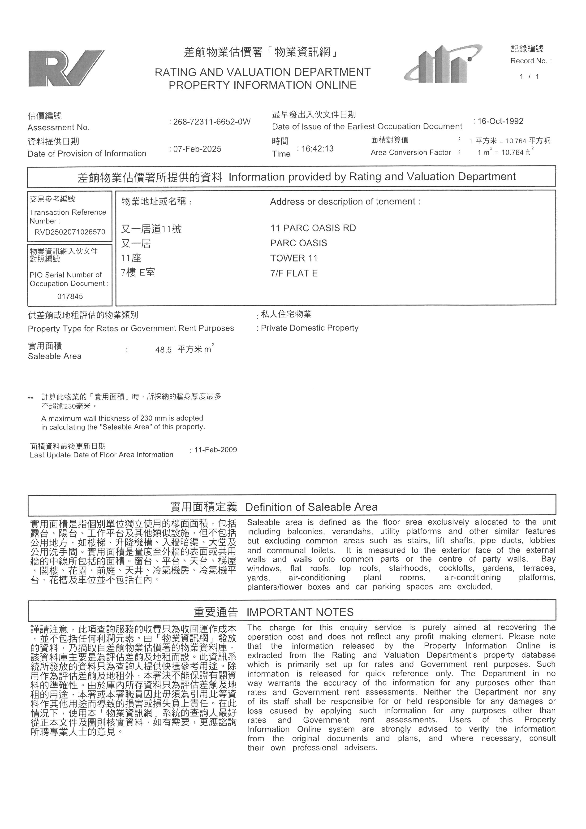 本網頁提供的物業資料只供參考之用,雖然本公司已盡力小心提供上述資料準確無誤,但本公司不會就本網頁所提供物業資料的任何錯誤、遺漏、失實陳述承擔任何保證及責任,本公司在任何情況下,都不須對因直接或間接使用或不能使用本網站提供的物業資料而引致任何損失或損毀負上法律責任或任何賠償。任何人仕必須明白及自行查證方作出競投、投買或購買,並於競投、投買或購買前由專業人仕(包括但並不謹限於律師、測量師及建築師等)獲取專業意見。