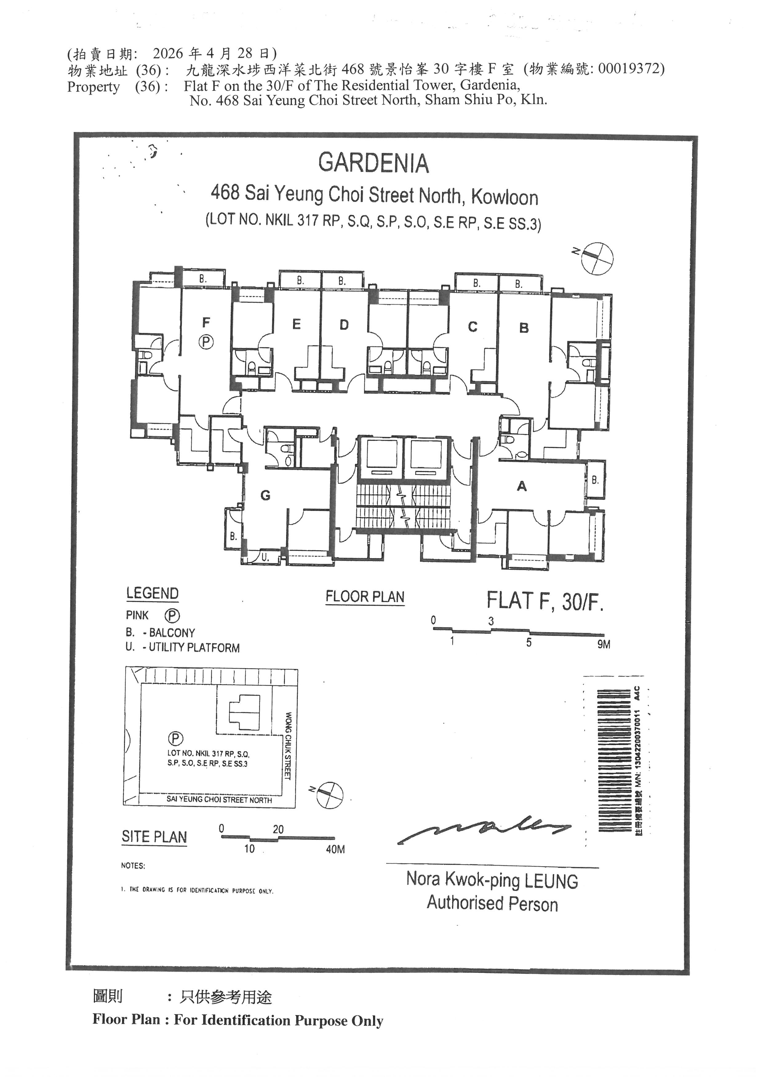 Flat F on the 30/F of The Residential Tower, Gardenia, No. 468 Sai Yeung Choi Street North, Sham Shiu Po, Kln.