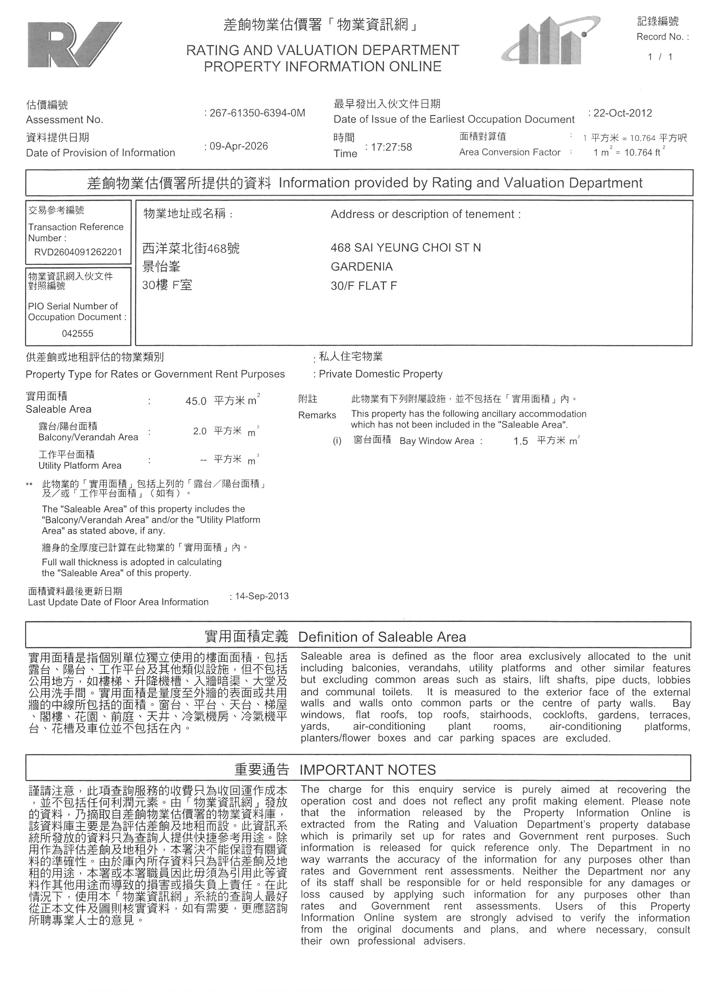 本網頁提供的物業資料只供參考之用,雖然本公司已盡力小心提供上述資料準確無誤,但本公司不會就本網頁所提供物業資料的任何錯誤、遺漏、失實陳述承擔任何保證及責任,本公司在任何情況下,都不須對因直接或間接使用或不能使用本網站提供的物業資料而引致任何損失或損毀負上法律責任或任何賠償。任何人仕必須明白及自行查證方作出競投、投買或購買,並於競投、投買或購買前由專業人仕(包括但並不謹限於律師、測量師及建築師等)獲取專業意見。