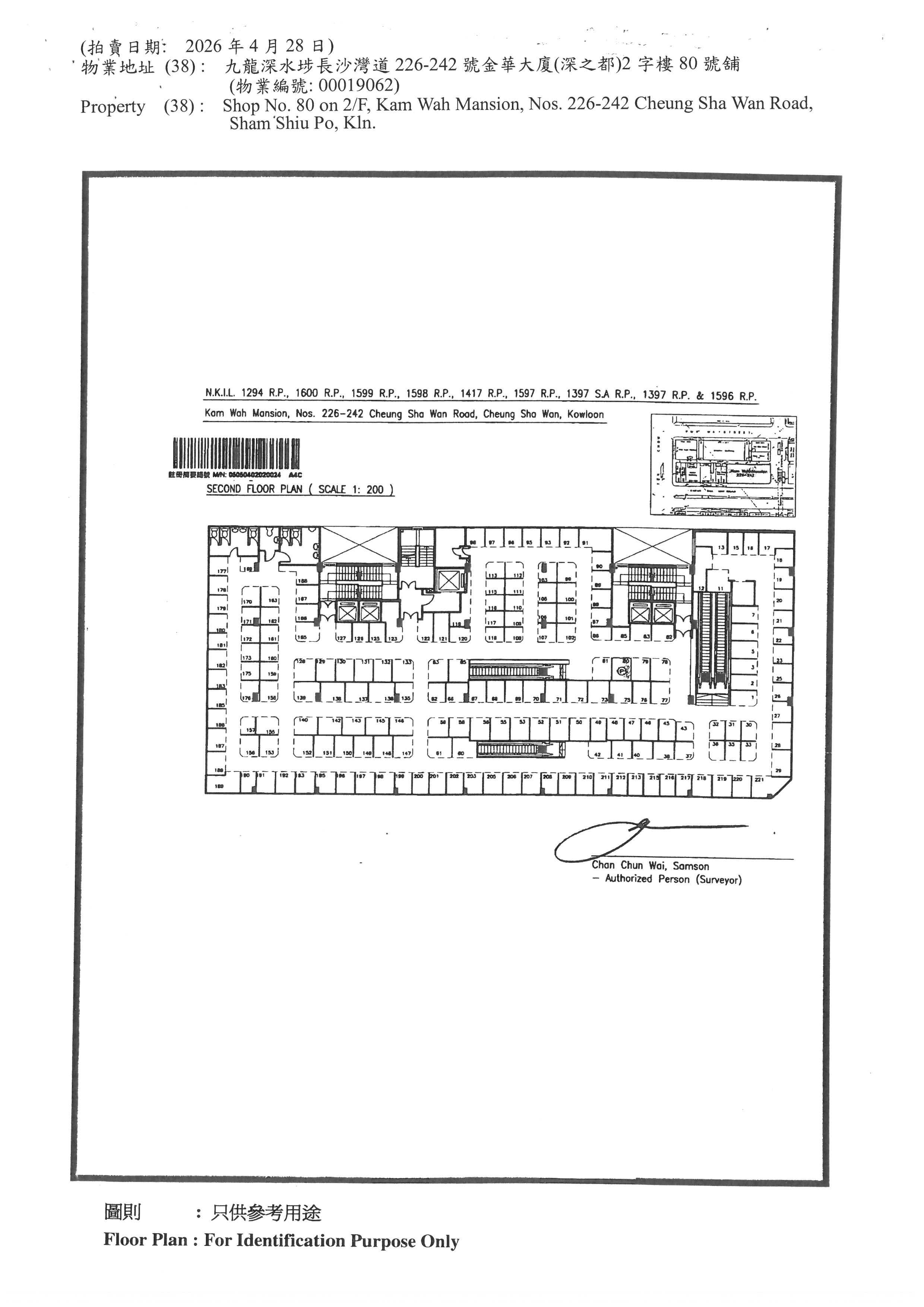 Shop No. 80 on 2/F, Kam Wah Mansion, Nos. 226-242 Cheung Sha Wan Road, Sham Shiu Po, Kln.