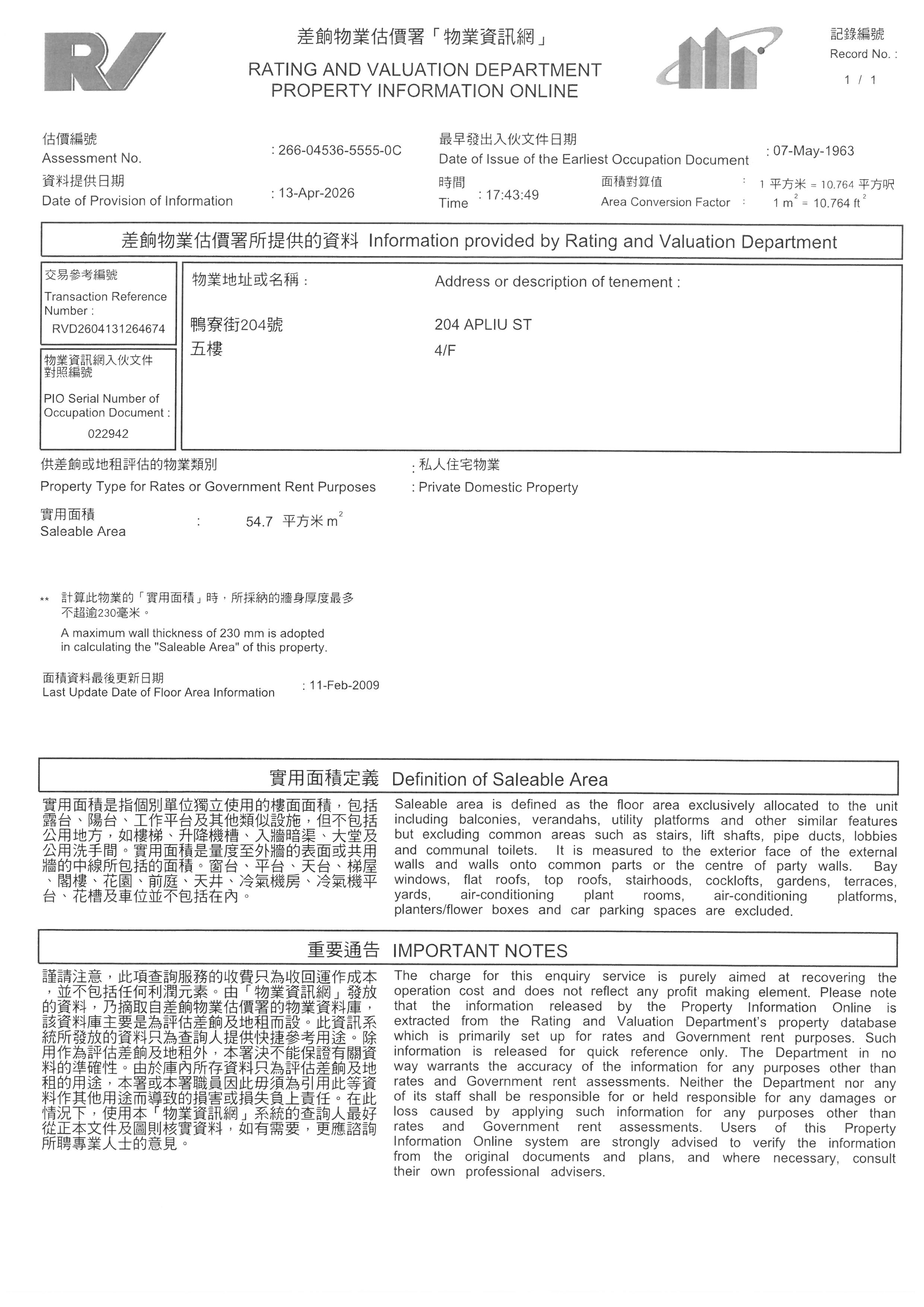 本網頁提供的物業資料只供參考之用,雖然本公司已盡力小心提供上述資料準確無誤,但本公司不會就本網頁所提供物業資料的任何錯誤、遺漏、失實陳述承擔任何保證及責任,本公司在任何情況下,都不須對因直接或間接使用或不能使用本網站提供的物業資料而引致任何損失或損毀負上法律責任或任何賠償。任何人仕必須明白及自行查證方作出競投、投買或購買,並於競投、投買或購買前由專業人仕(包括但並不謹限於律師、測量師及建築師等)獲取專業意見。