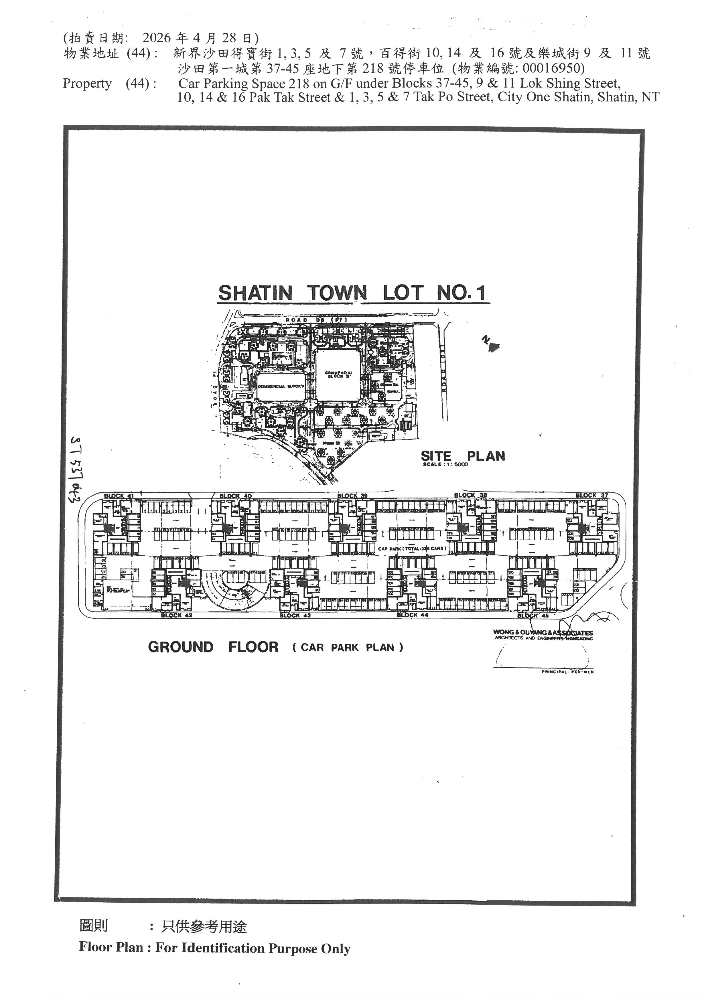 Car Parking Space 218, G/F under Blocks 37-45, 9 & 11 Lok Shing St., 10, 14 & 16 Pak Tak St. & 1, 3, 5 & 7 Tak Po St., City One Shatin, Shatin, NT