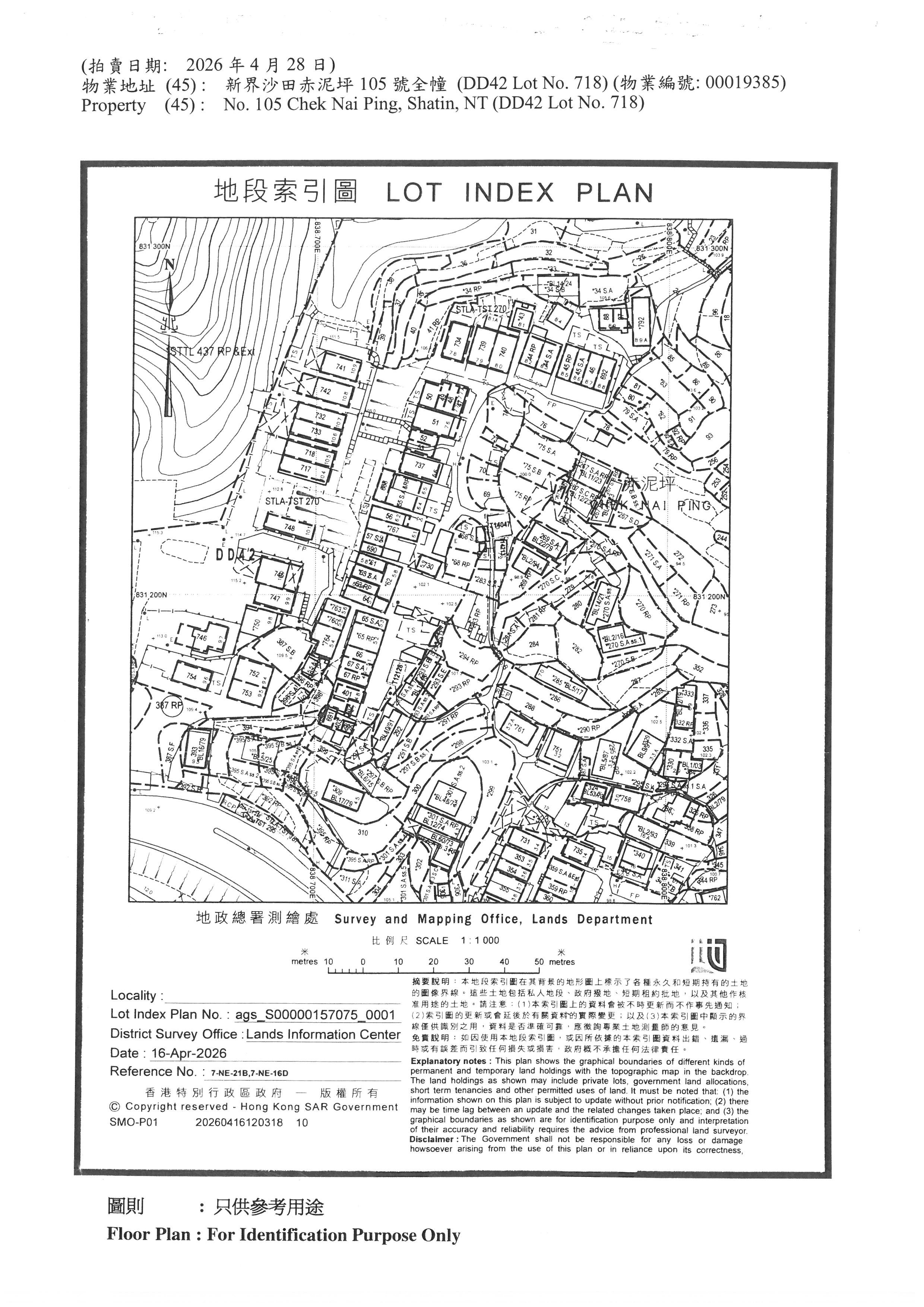 新界沙田赤泥坪105號全幢 (DD42 Lot No. 718) (物業編號: 00019385)