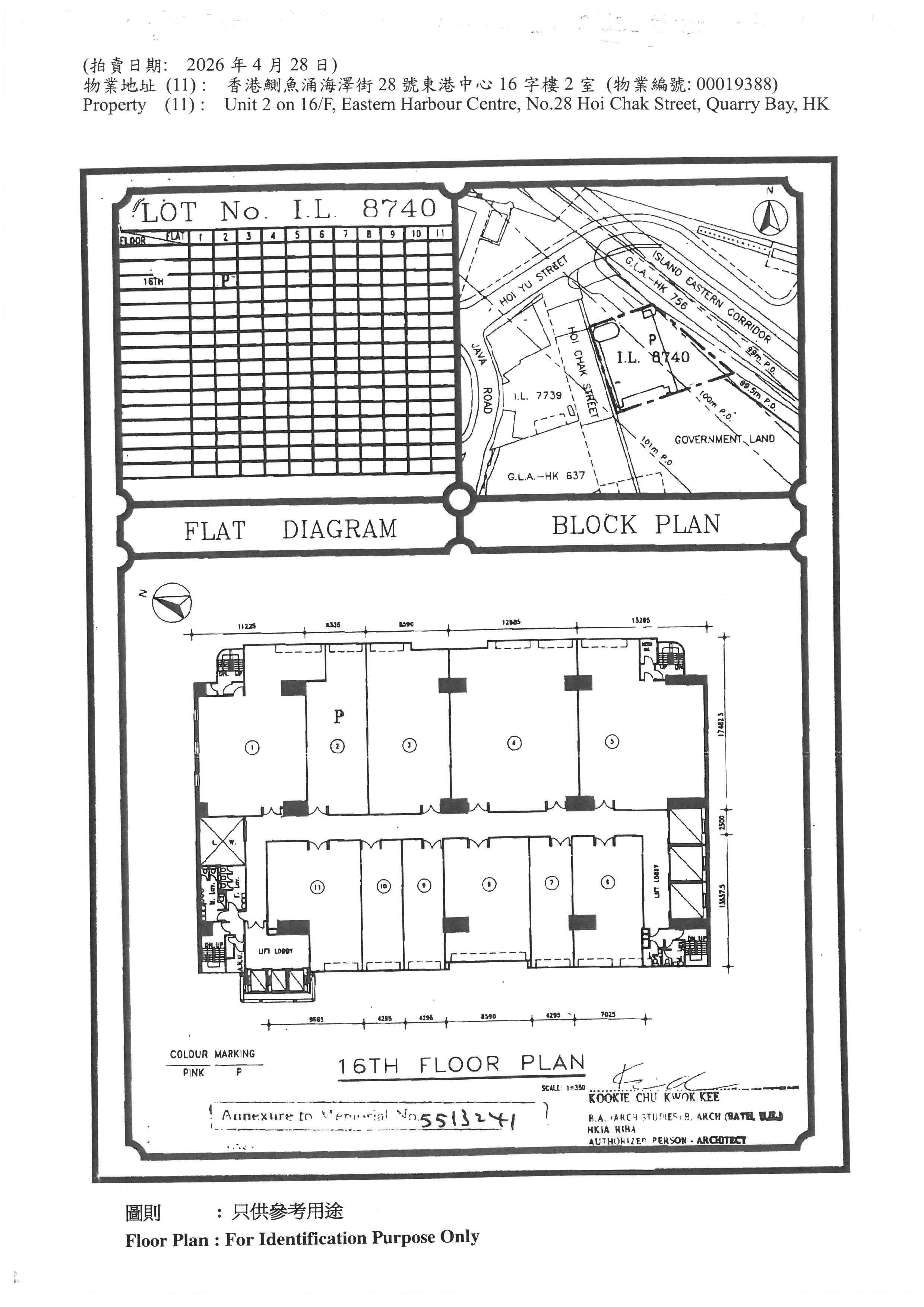 Unit 2 on 16/F, Eastern Harbour Centre, No.28 Hoi Chak Street, Quarry Bay, HK
