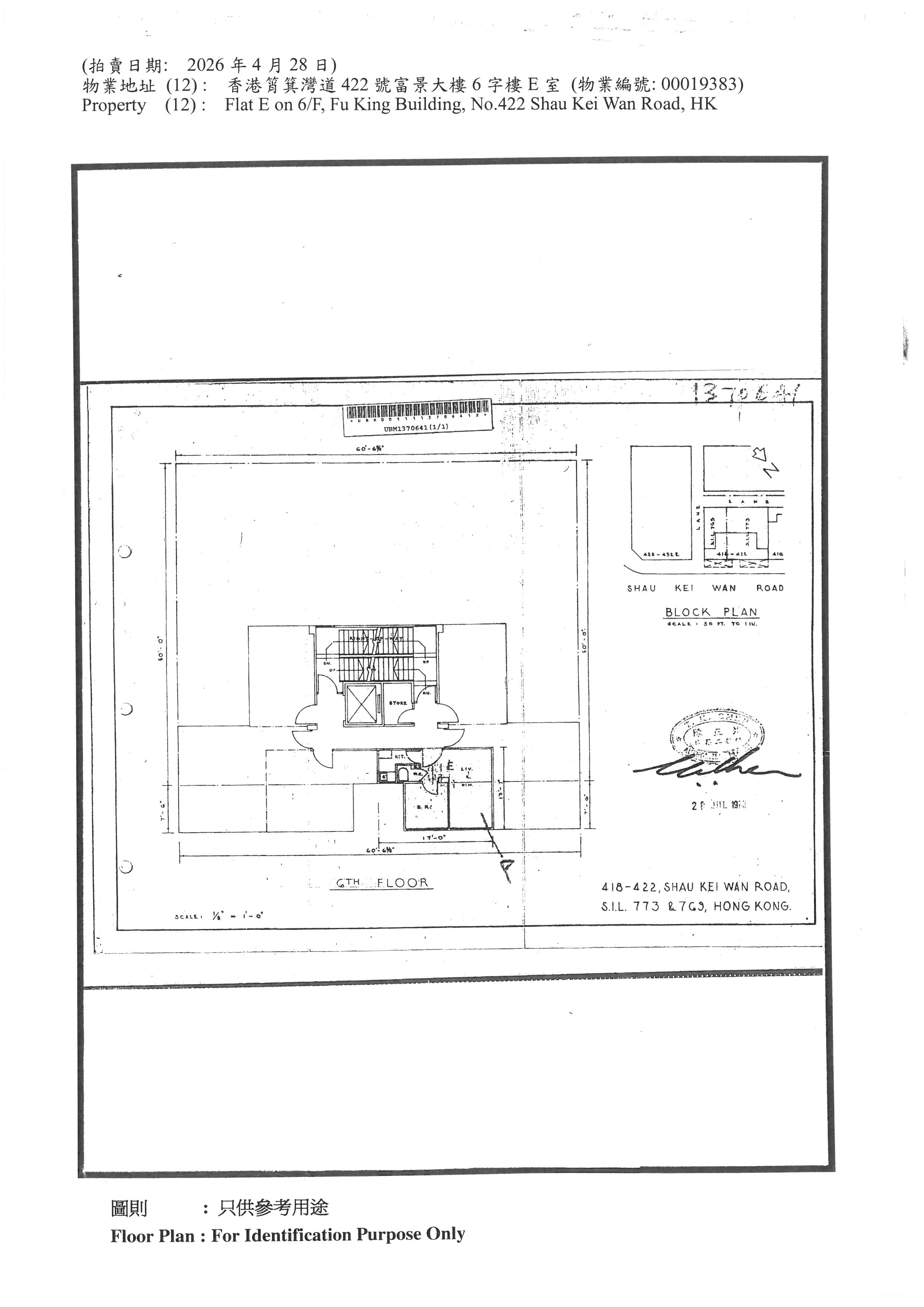 香港筲箕灣道422號富景大樓6字樓E室 (物業編號: 00019383)