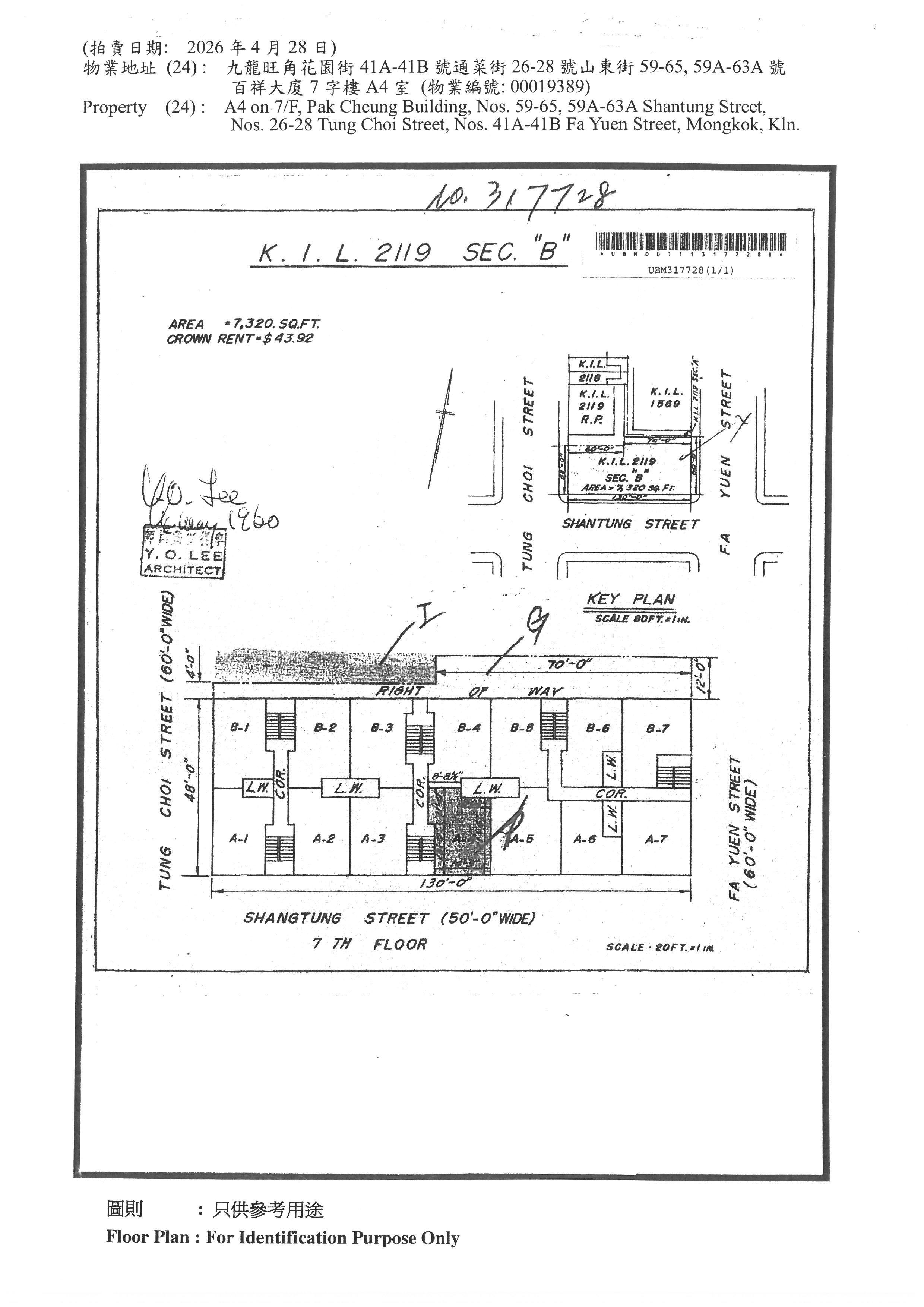 A4 on 7/F, Pak Cheung Building, Nos. 59-65, 59A-63A Shantung Street, Nos. 26-28 Tung Choi Street, Nos. 41A-41B Fa Yuen Street, Mongkok, Kln.