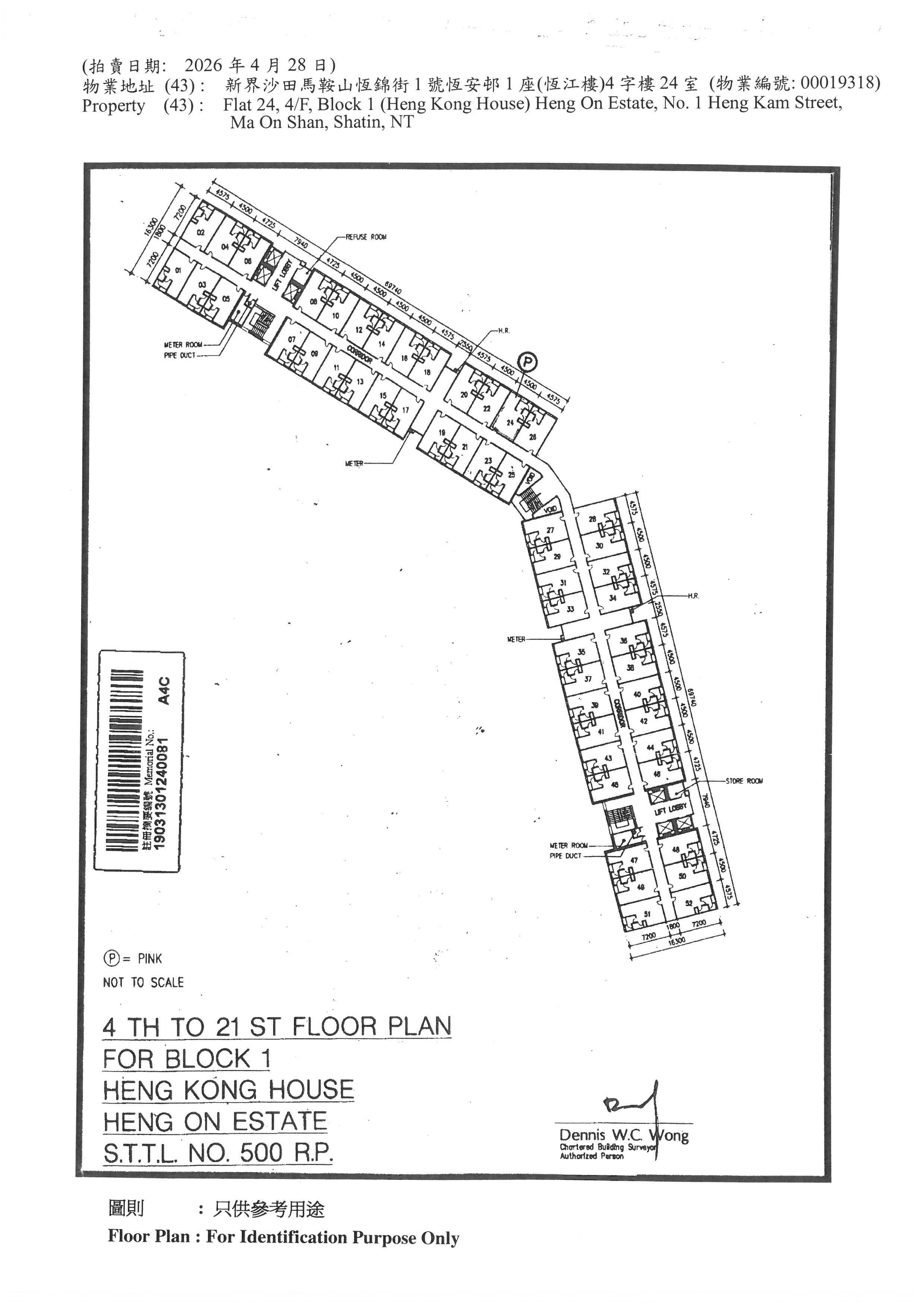 Flat 24, 4/F, Block 1(Heng Kong House), Heng On Estate, No. 1 Heng Kam Street, Ma On Shan, Shatin, NT